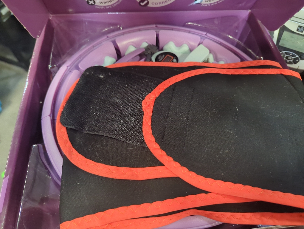 Needs cleaning has hair Size 60-112 cm Color purple included a back brace Swiss Activa S5.S Silent Weight Loss Hula Hoop with weight ball Premium with Counter -Waist Size 60-112cm - Infinity Hoop- Smart Weighted Hula Hoop- Smart Hula Hoop- Weighted Hula Hoops for Women