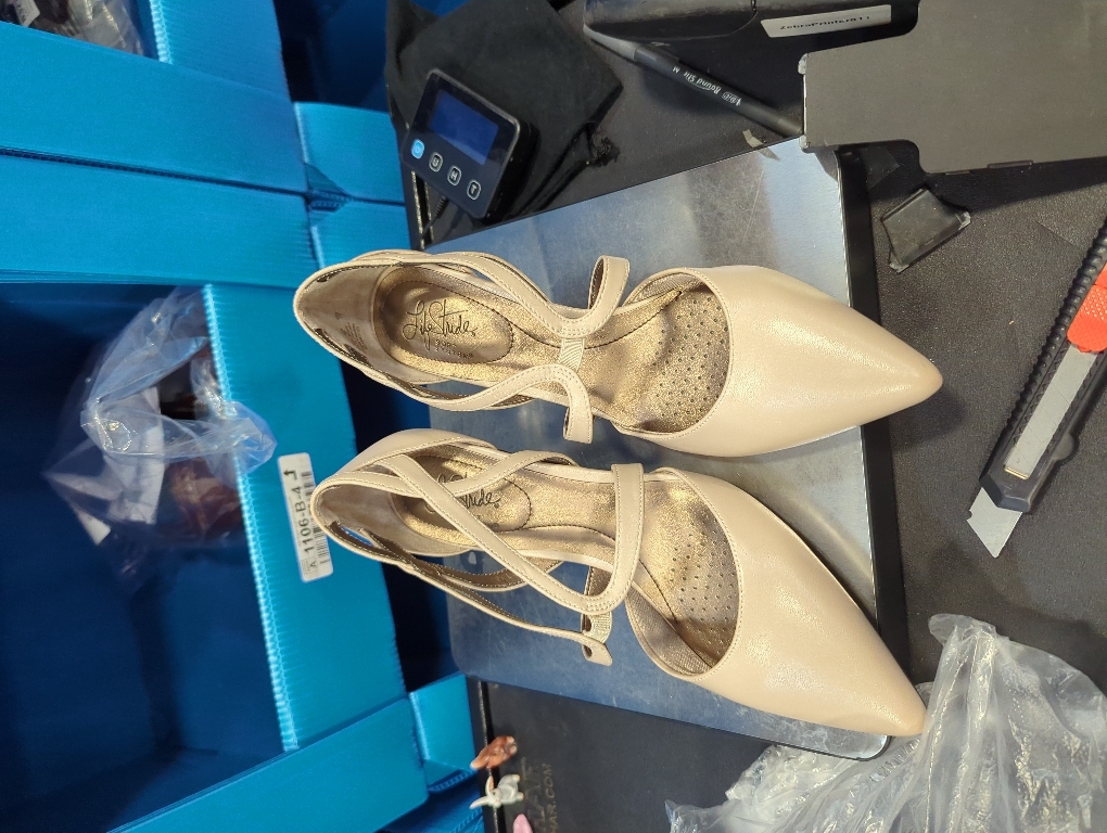 Size/6.5 Comfortable womens high heeled shoes with slip-on fit, and asymmetrical, strap detail with elastic goring for extra flexibility