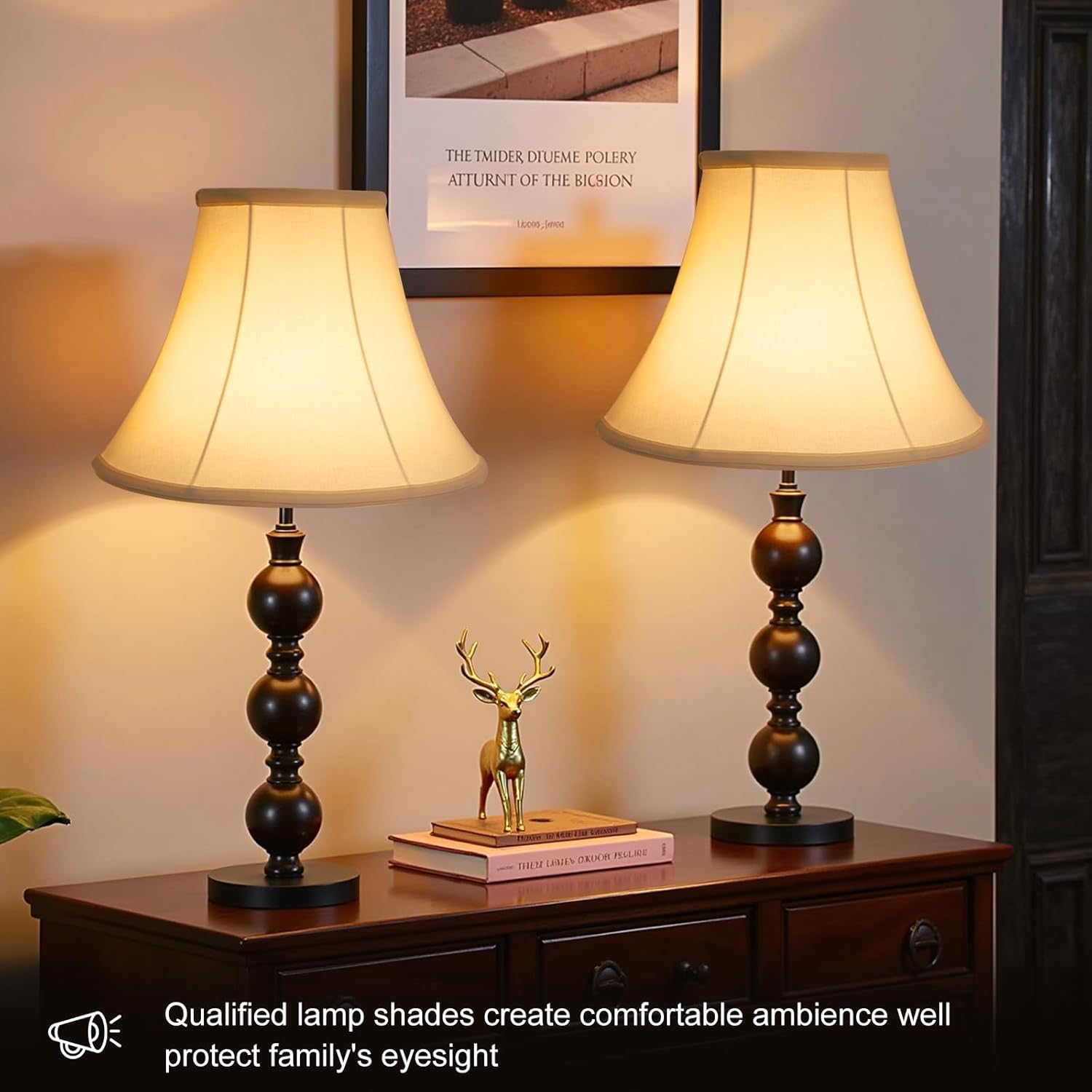【Spider/Harp Fitter】The Bell lamp shade set of 2 is for having harps above light bulbs and fixed by screw-on finials.Please confirm that your lamps have harps and finials to hold the shades. (Harps and finials NOT included)