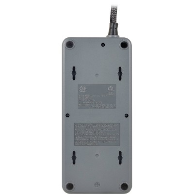 Size 8 ft GE 12-Outlet Surge Protector 3540J 8' Braided Cord Black/Gray: Extension Cord, Outlet Extender, Multiple Plug-in Outlets
