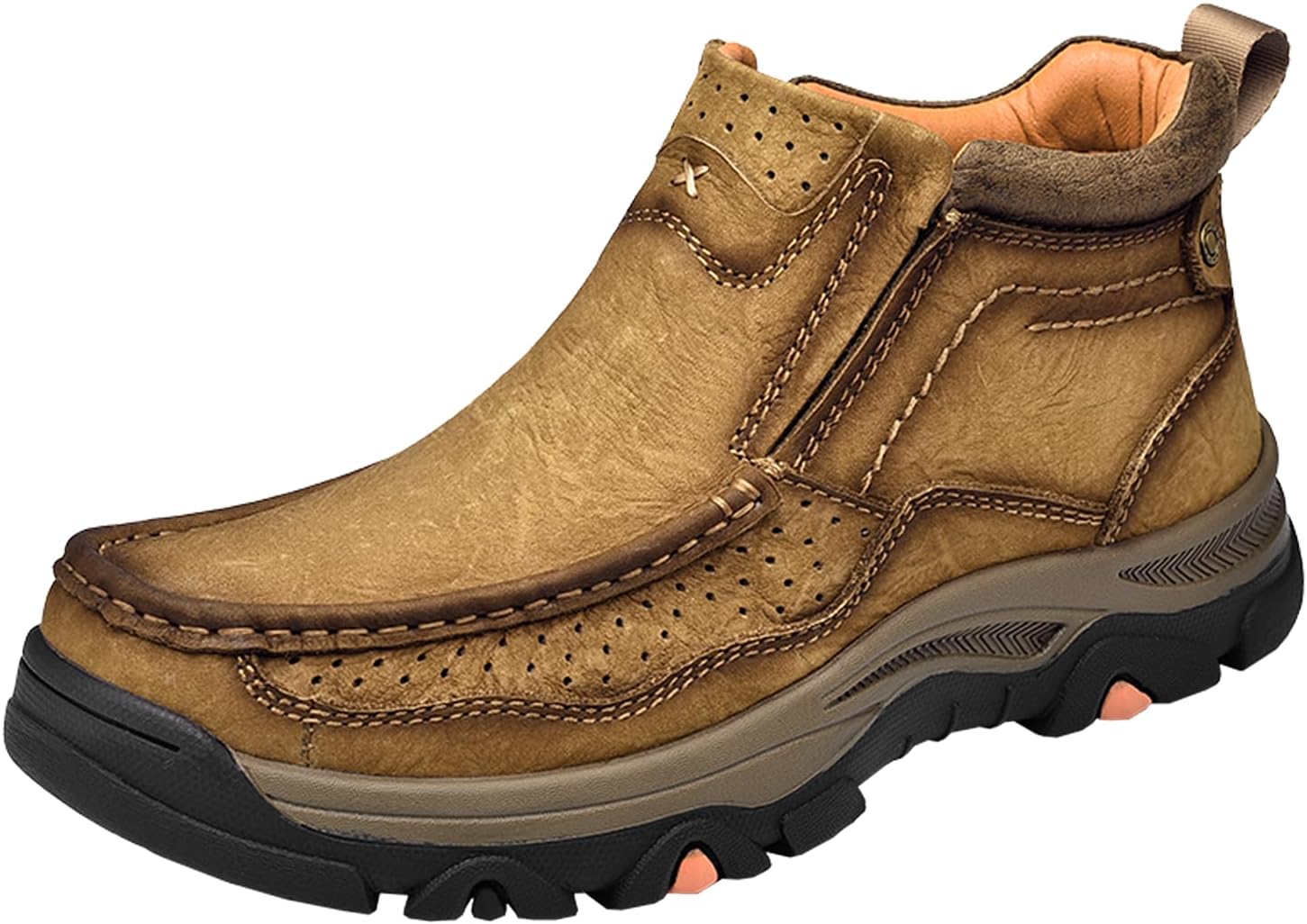 Size/9.5 Mens Slip On Casual Loafers Classic Outdoor Leather Walking Hiking Shoes Comfortable for Work Office Dress Outdoor High Top