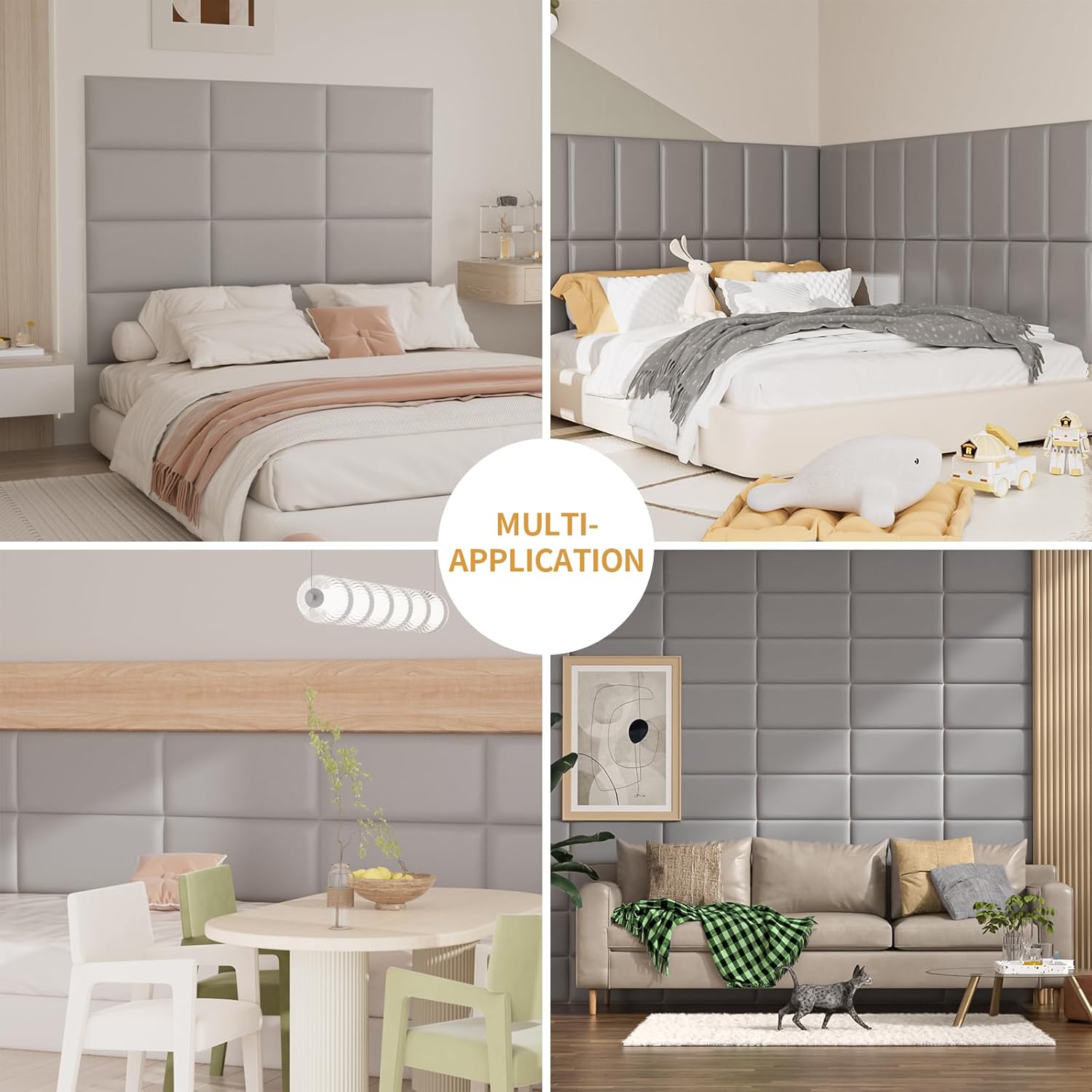 Size 9.84x23.6 Headboards Wall Panel for Twin, Self-Adhesive 3D Wall Panels, Upholstered Wall Panel for Bedroom/Living Room (4 Pieces 9.84 in x 23.6 in)