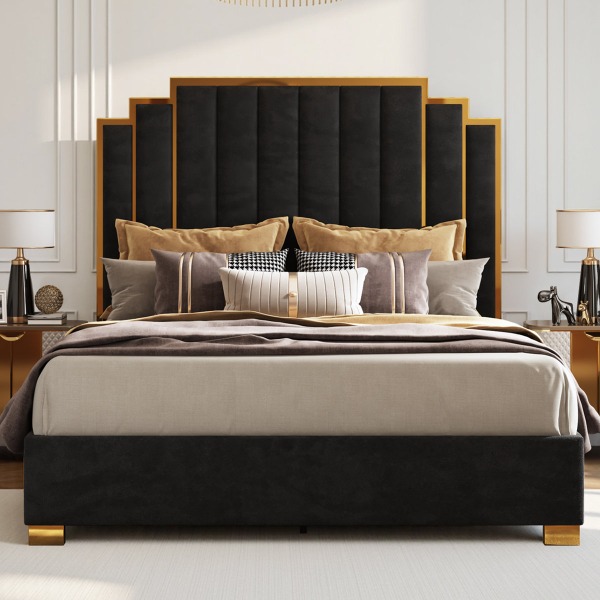 New open box for inspection Size King Color Black Duncanville Upholstered King Platform Bed, Black