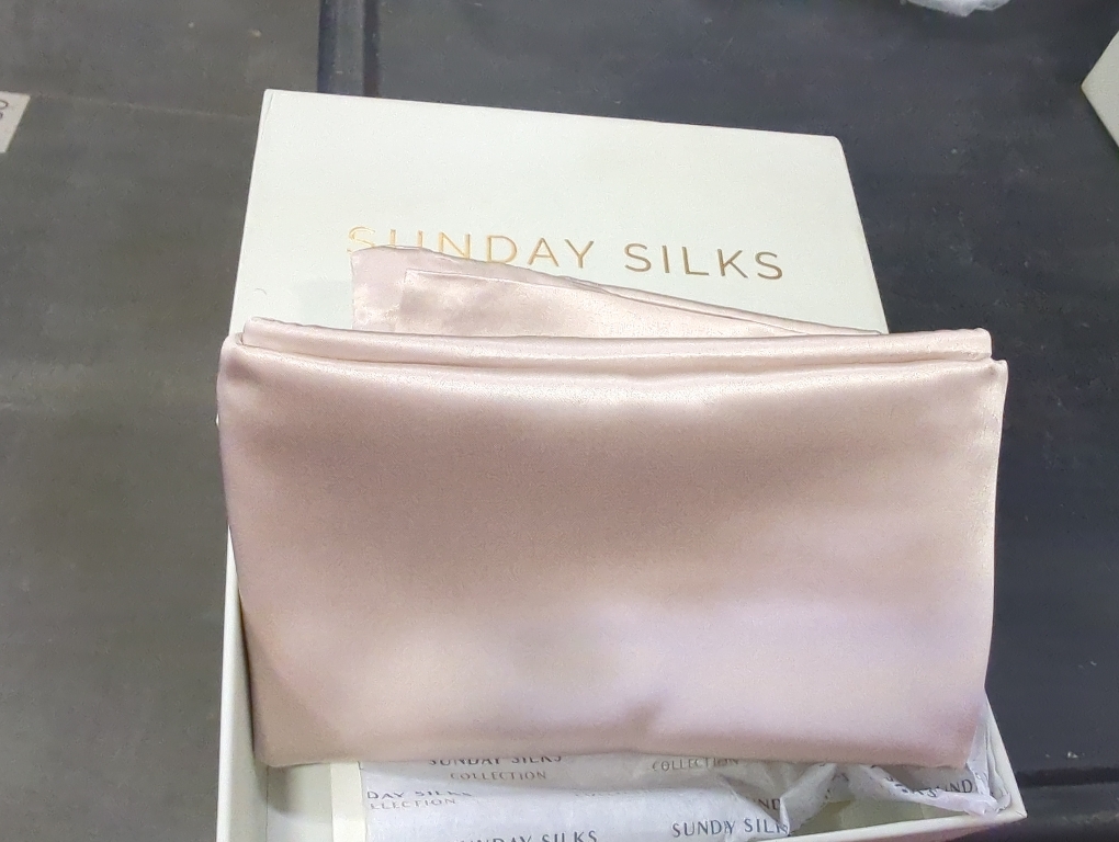 New Open box for inspection Size king Color nude champagne FEEL THE SUNDAYSILKS LOVE: Snuggle into the world's softest & best silk pillow case king size 20x36" Sourced from the #1 natural silk fibres on earth and carefully handmade for durability. Your mulberry silk pillowcases are sustainably OEKO-TEX Certified.
