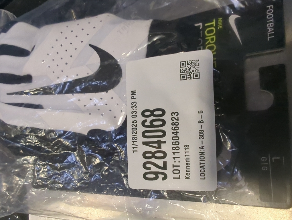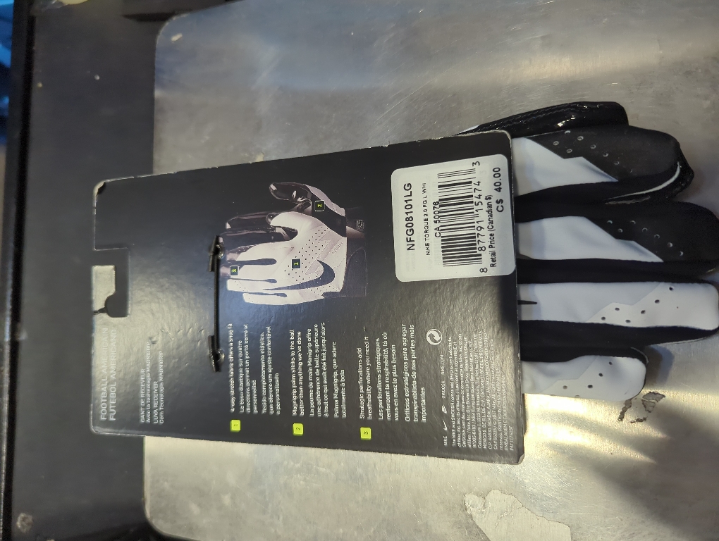 Size L Black and White Nike Youth Torque 2.0 Receiver Gloves