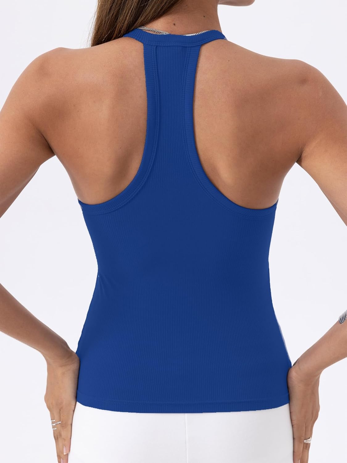 3. Size L Danysu V Neck Racer Back Tank Top for Women Padded Ribbed Long Tank Fitted Basic Cami Tops