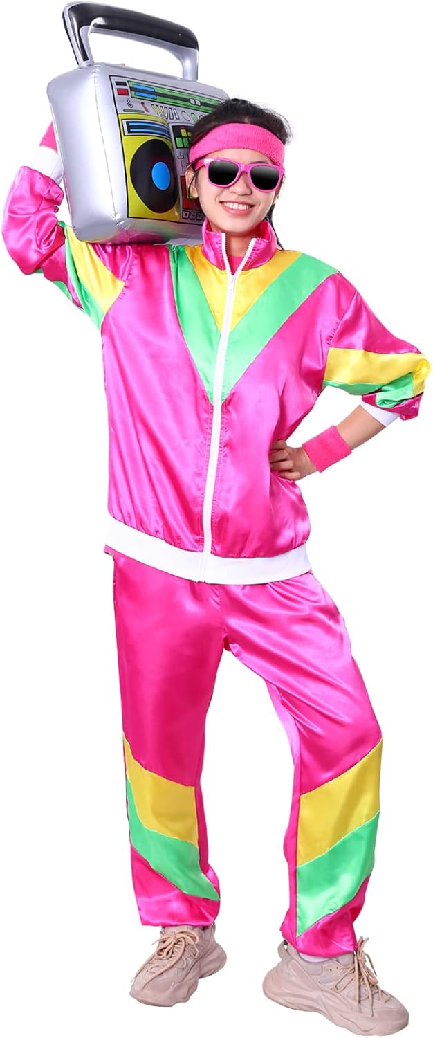 Size L Generic 80s 90s Tracksuit for Men Women Retro Hip Hop Windbreaker Disco Colorblock Workout Outfits, 1
