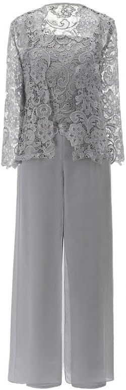 Size L Mother of The Bride Pant Suits with Lace Jacket 3 Pcs Chiffon Long Evening Gowns Outfit