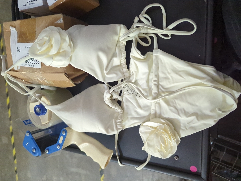 Size L Women's 2 Piece Solid 3D Flower Halter Bikini Set Side Tie High Cut Triangle Swimsuit Bathing Suit Beachwear
