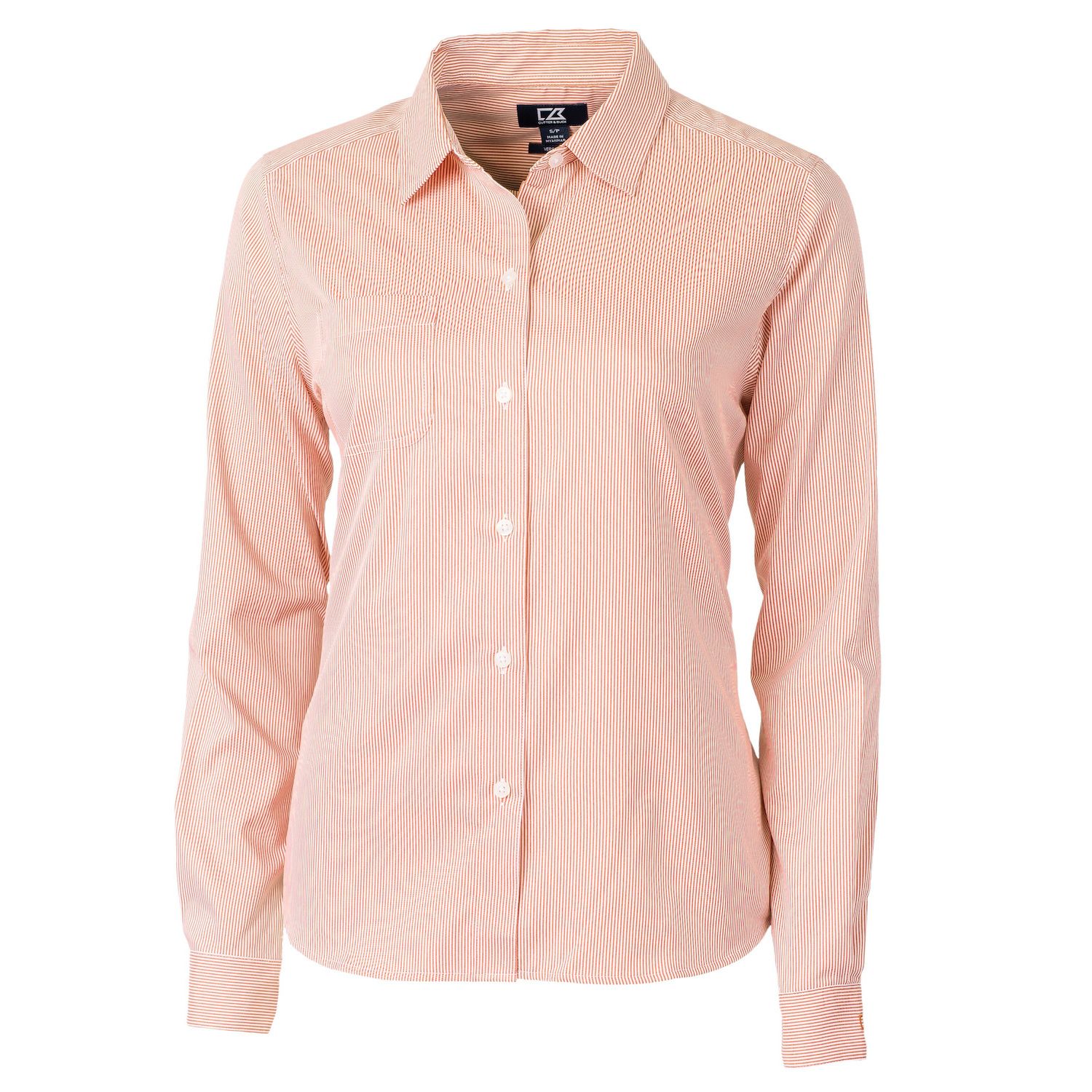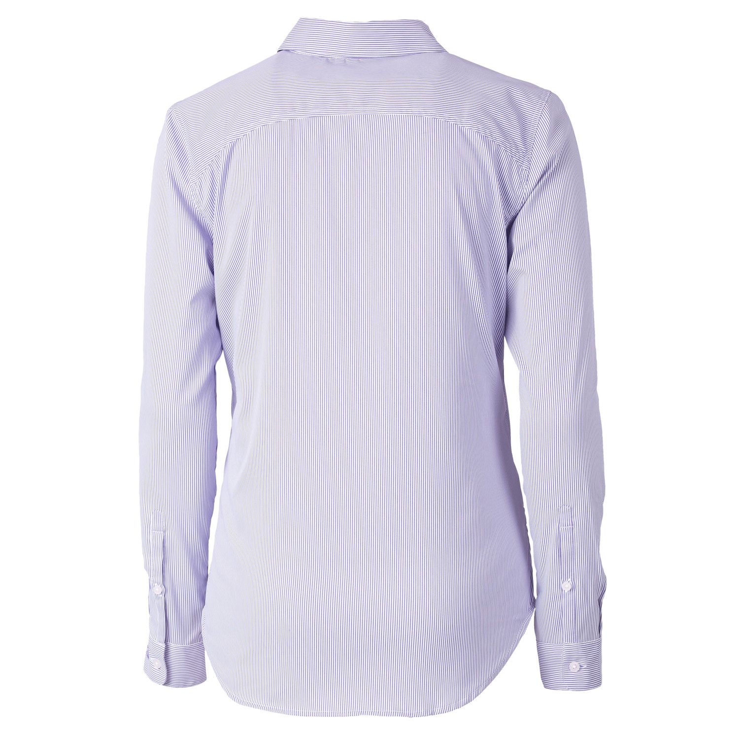 3. Size large Color Purple and White Cutter & Buck Versatech Pinstripe Stretch Womens Long Sleeve Dress Shirt