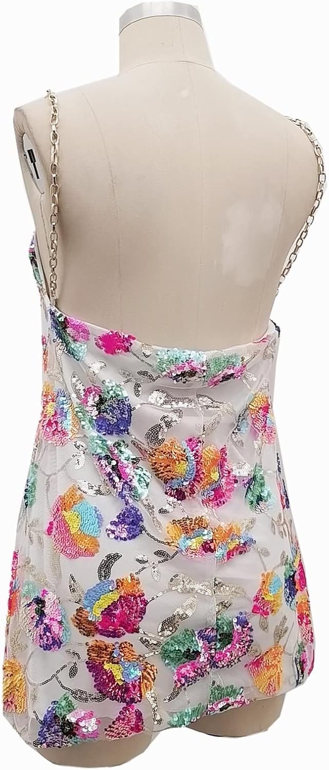 Unique Design - Women's summer mini dress features unique colorful flower sequin design, sleeveless, spaghetti straps, backless, low-cut, layered, summer a-line short dress for women. Glitter Colorful Sequin Bodycon Dress, which will make you looks sexy, beautiful, charming and eye-catching.