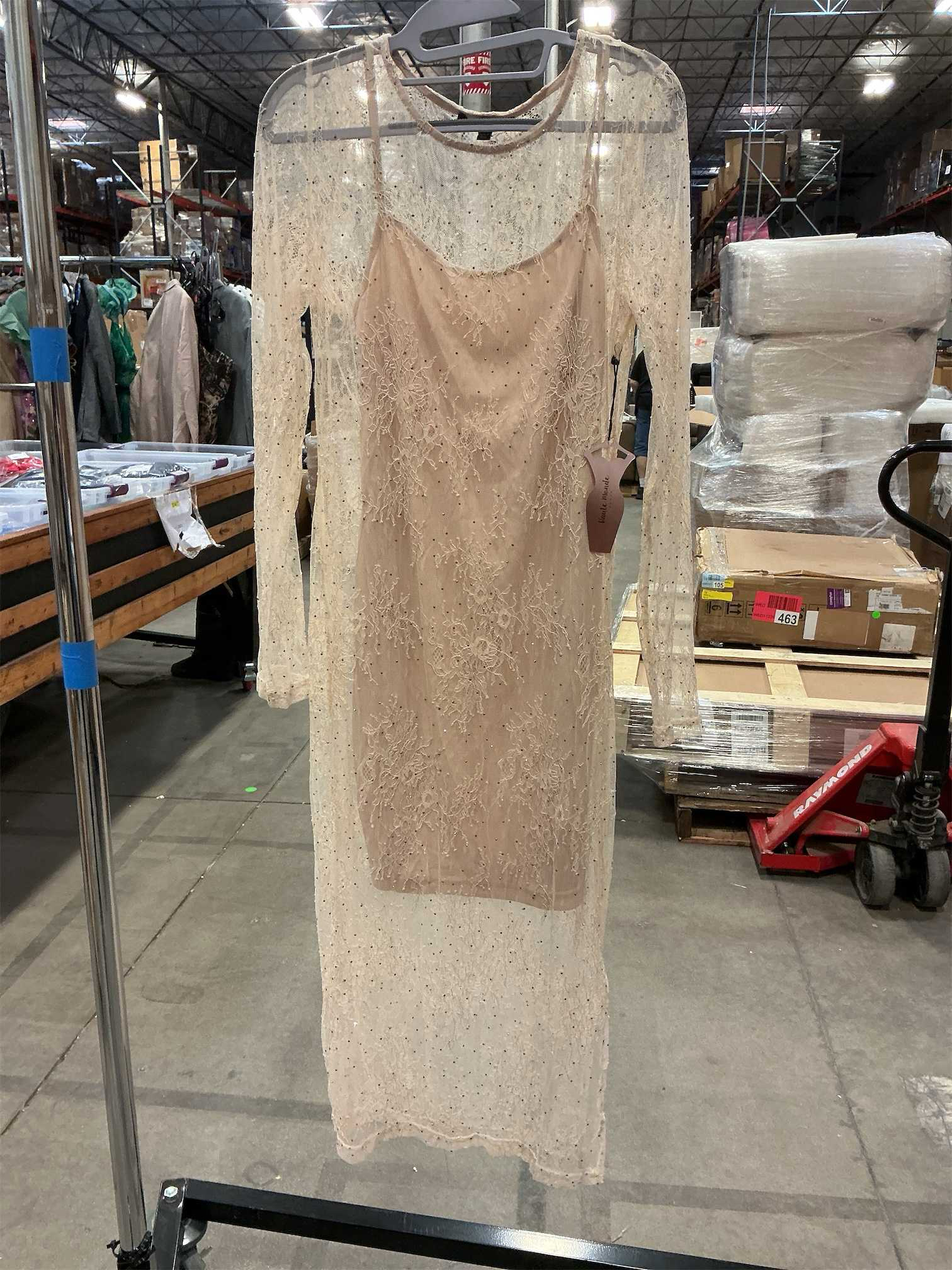 SIZE LARGE HAUTE MONDE Sexy Lace Dresses Long Sleeve See Through Bodycon Midi Dress 2 Piece Dress Set Birthday Date Night Outfit