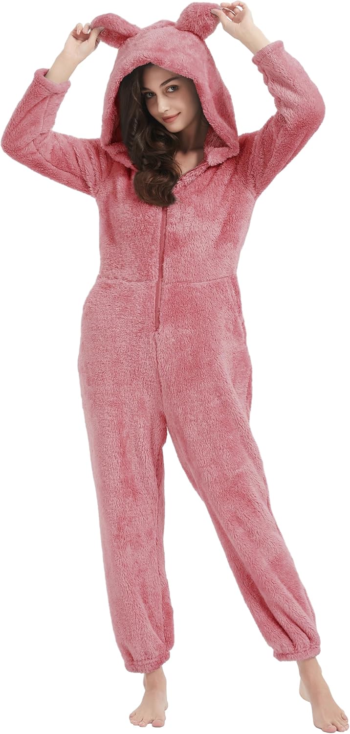 Features: Onesie for women features a large hood with cute ear, elastic cuff, long sleeve, two side pockets, zip-up front closure makes it easy to put on or take off the onesie. Teddy fleece womens onesie pajama, eye catching funny pajamas for womenes: Onesie for women features a large hood with cute ear, elastic cuff, long sleeve, two side pockets, zip-up front closure makes it easy to put on or take off the onesie. Teddy fleece womens onesie pajama, eye catching funny pajamas for women