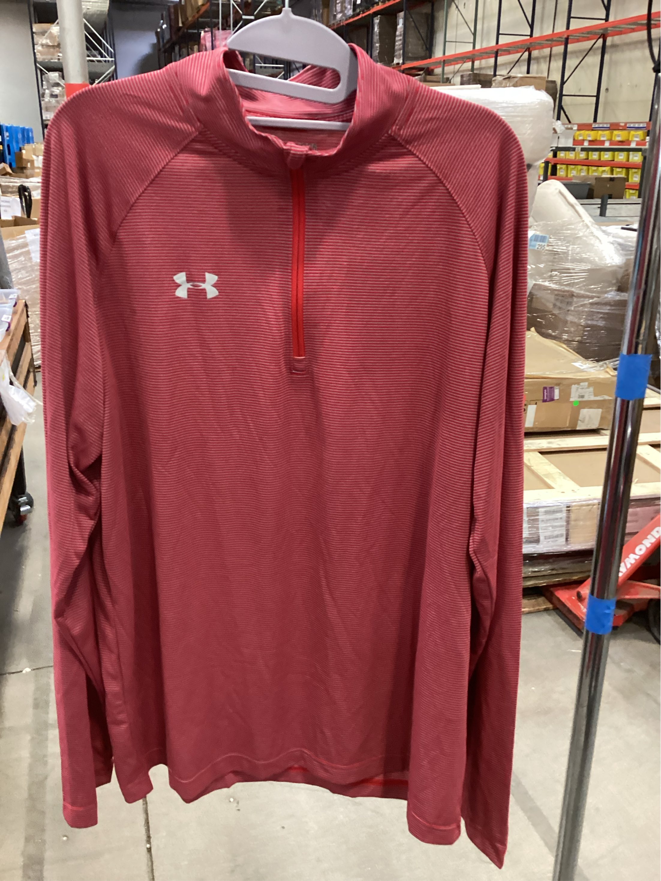 Under Armour Men's Stripe Tech 1/4 Zip Pullover LONG SLEEVE RED L