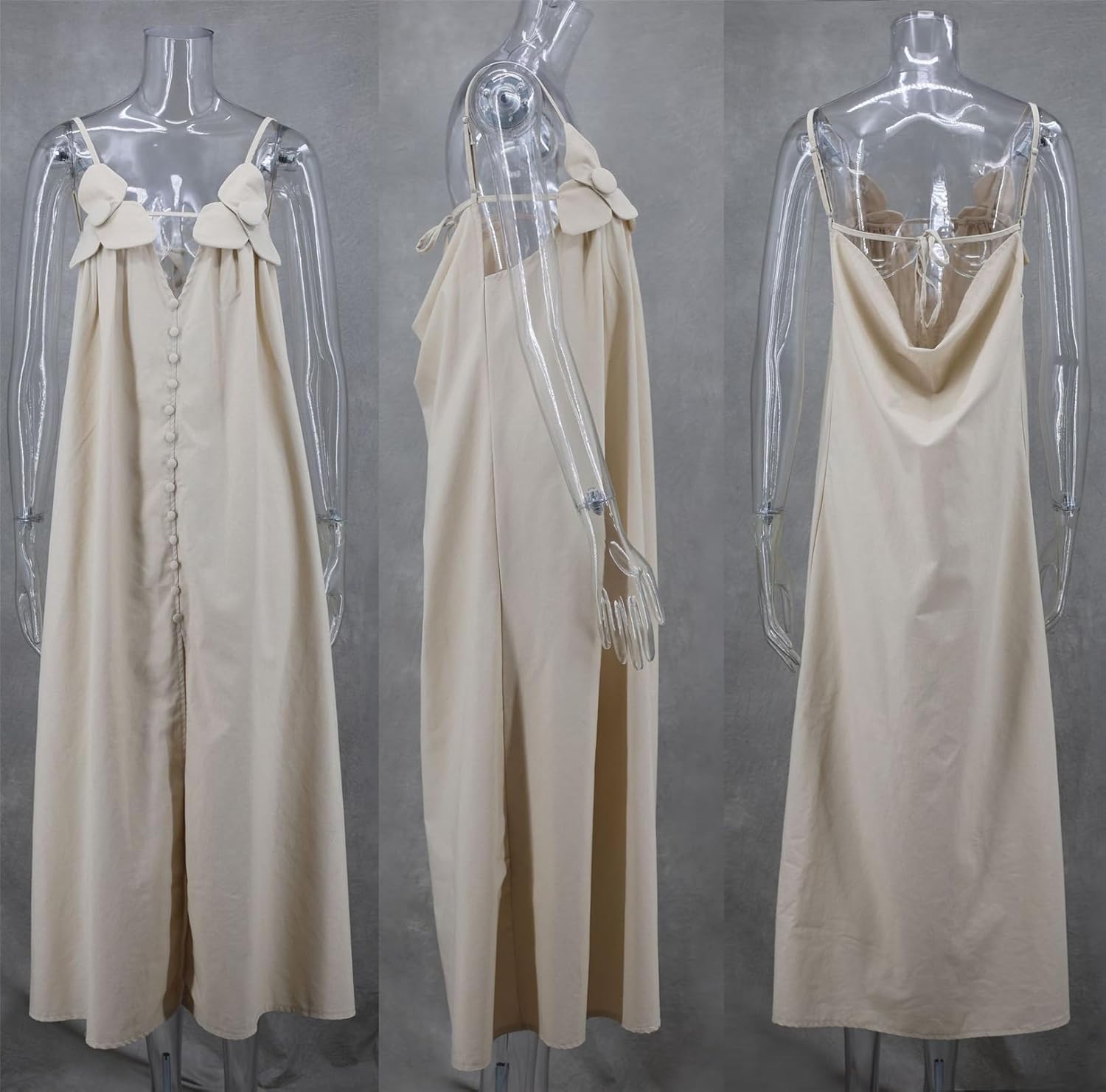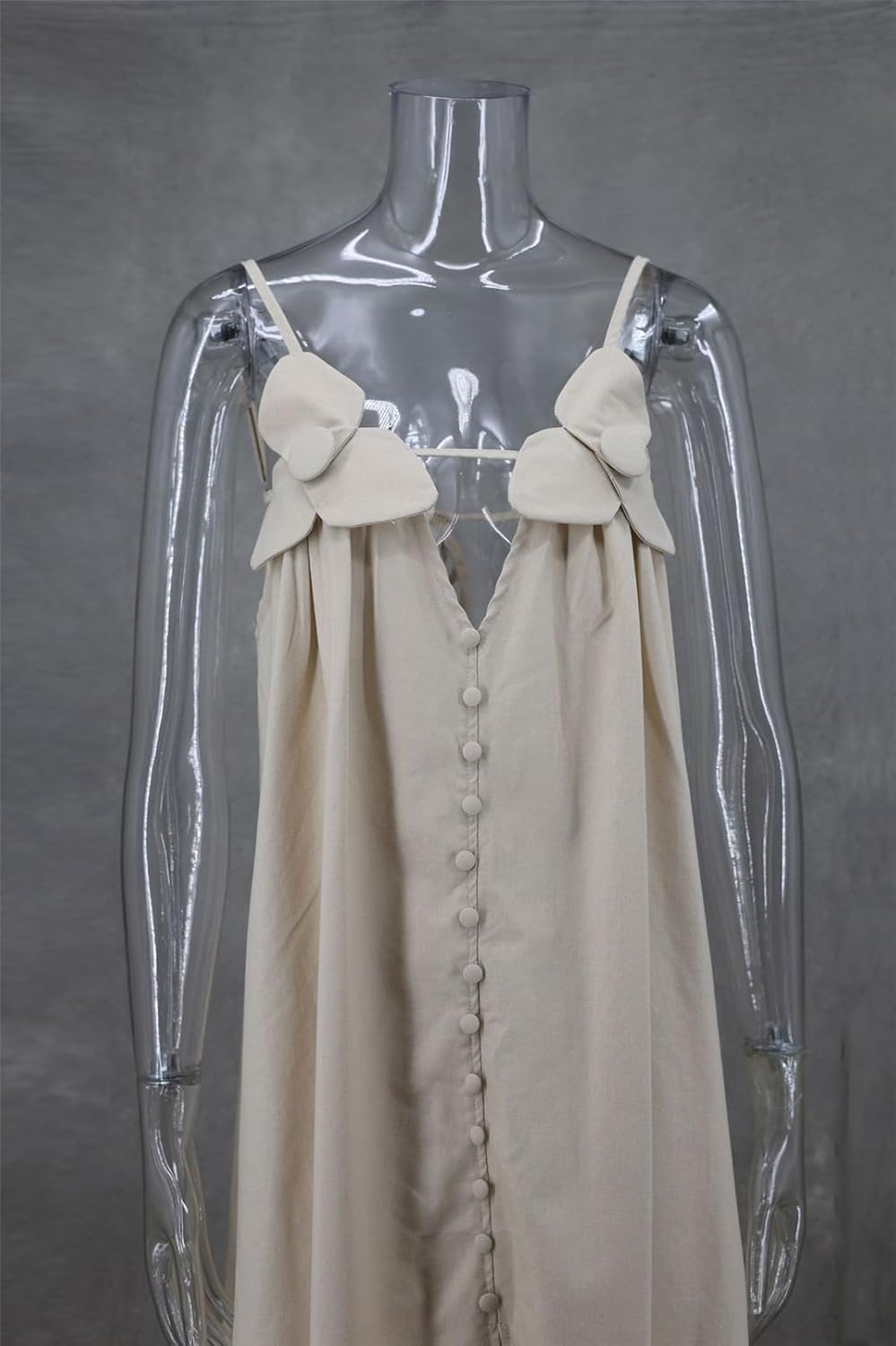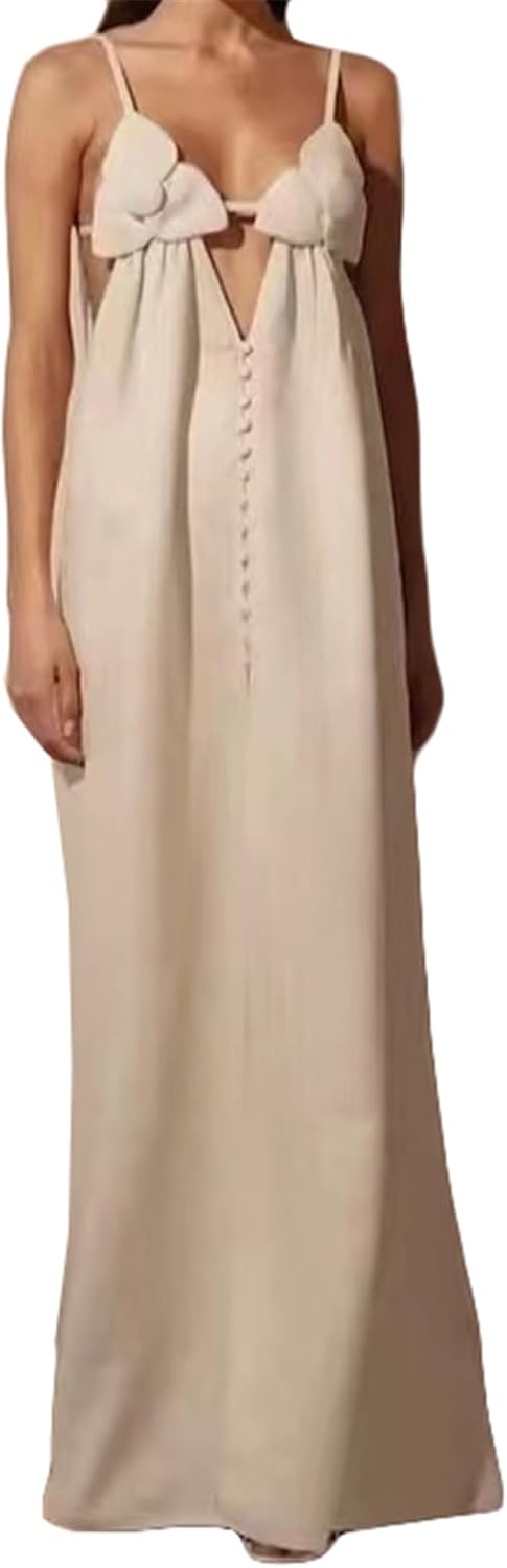 Size L..Recious Womens Sexy Sleeveless Spaghetti Strap V Neck 3D Flowers Button Bodycon Party Clubwear Dress