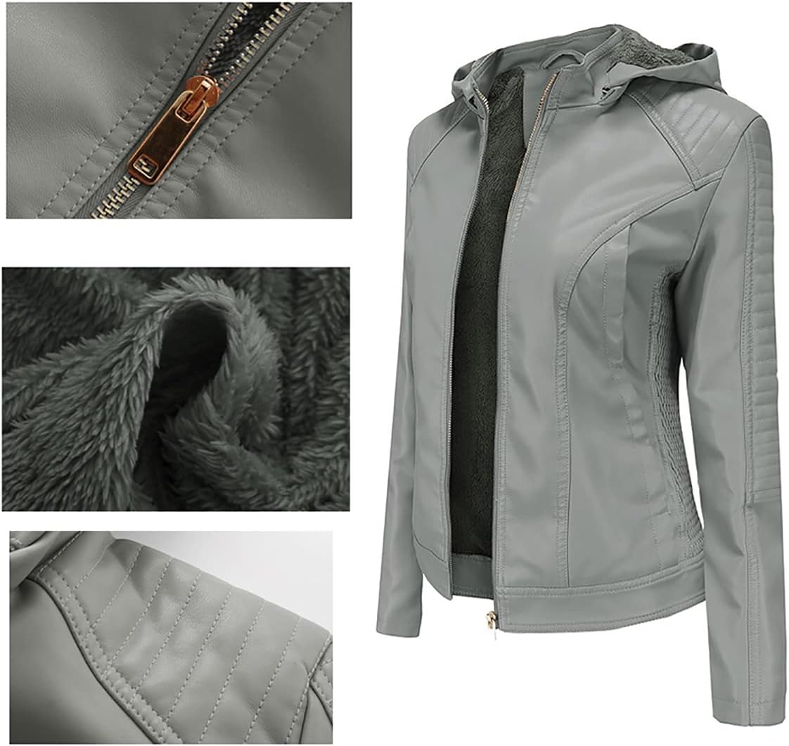 Size/m Faux Leather Jacket Women Biker Moto Coat With Removable Hood Plus Size Fall Clothes