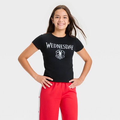 Size M Girls' Short Sleeve Graphic 'Wednesday' Baby T-Shirt - art class ? Black