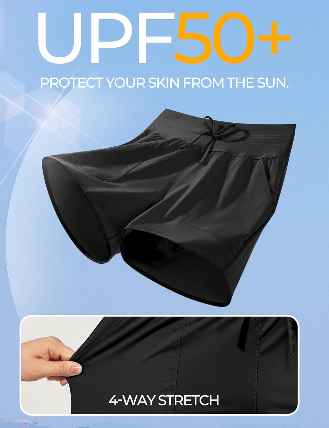 Upgraded Stretch & Quick Dry: Hey ladies, beach-bound and ready to shine? These IUGA swim shorts women are crafted with a 4-way stretchy fit that hugs your curves just right, ensuring you to splash and play freely. Plus, Womens board shorts built in fast-drying, UPF 50 sun protection and chlorine resistant technology will keep your skin cool while soaking up the beach sun and dry in a flash, wave goodbye to soggy bums!