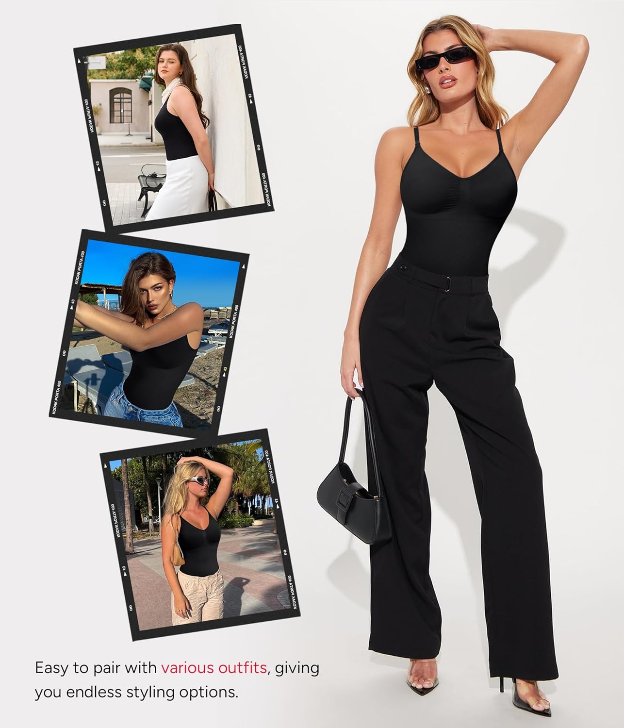 Stylish V-Neck Bodysuit Design: Available for many colors including classic black bodysuit women and white bodysuit women tummy control, features a timeless deep V-neck design that elegantly accentuates the contours of your neck, bust, and face. It is designed without chest padding, allowing you to wear your preferred bra. The adjustable shoulder straps offer extra support and a customizable fit for both short and long torsos, ensuring a perfect match for your body shape.