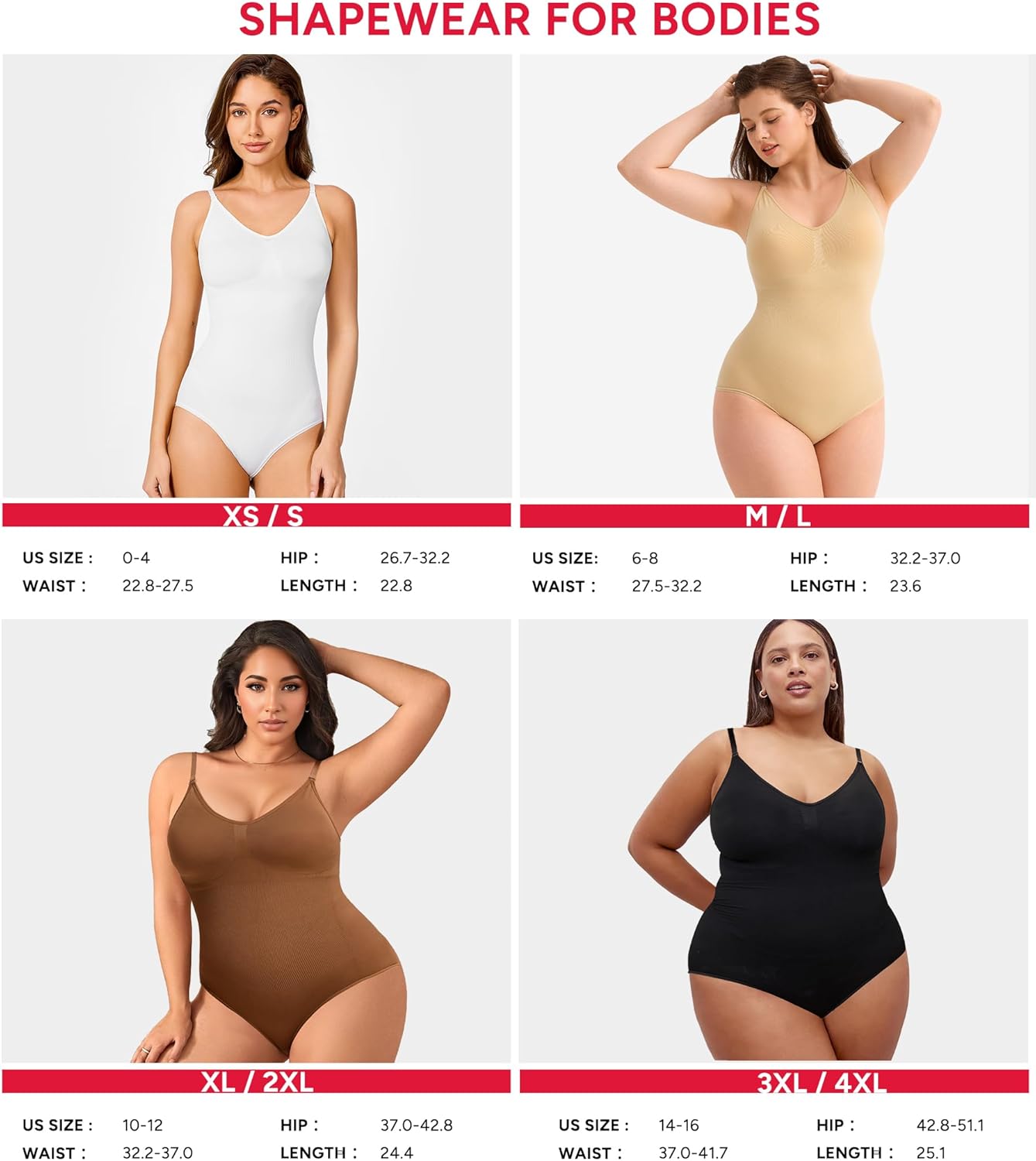 Sizing Tips: Follow our size guides and size up if you are between sizes. The shapewear bodysuit looks tiny at first but please step into this bodysuit from the bottom and work your way up. The shapewear tummy control made with stretchy spandex and durable nylon fabric, as the girdle for women tummy control fits and hugs your body in all the right places, provides 360-degree seamless coverage.