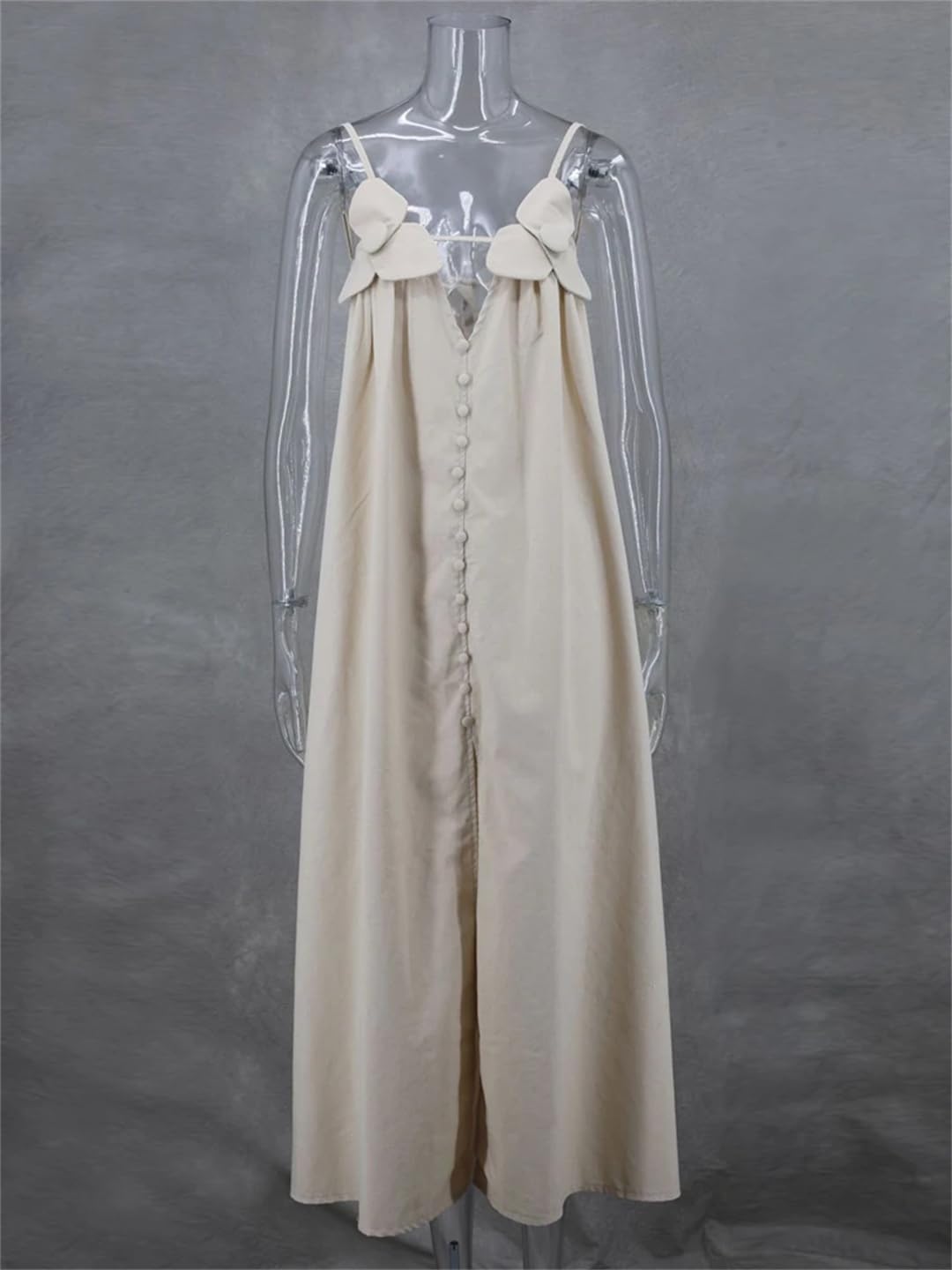 Size M/L ..Women Elegant Spaghetti Strap Casual Loose Holiday Beach Dress Sexy Backless Bohemia Dress