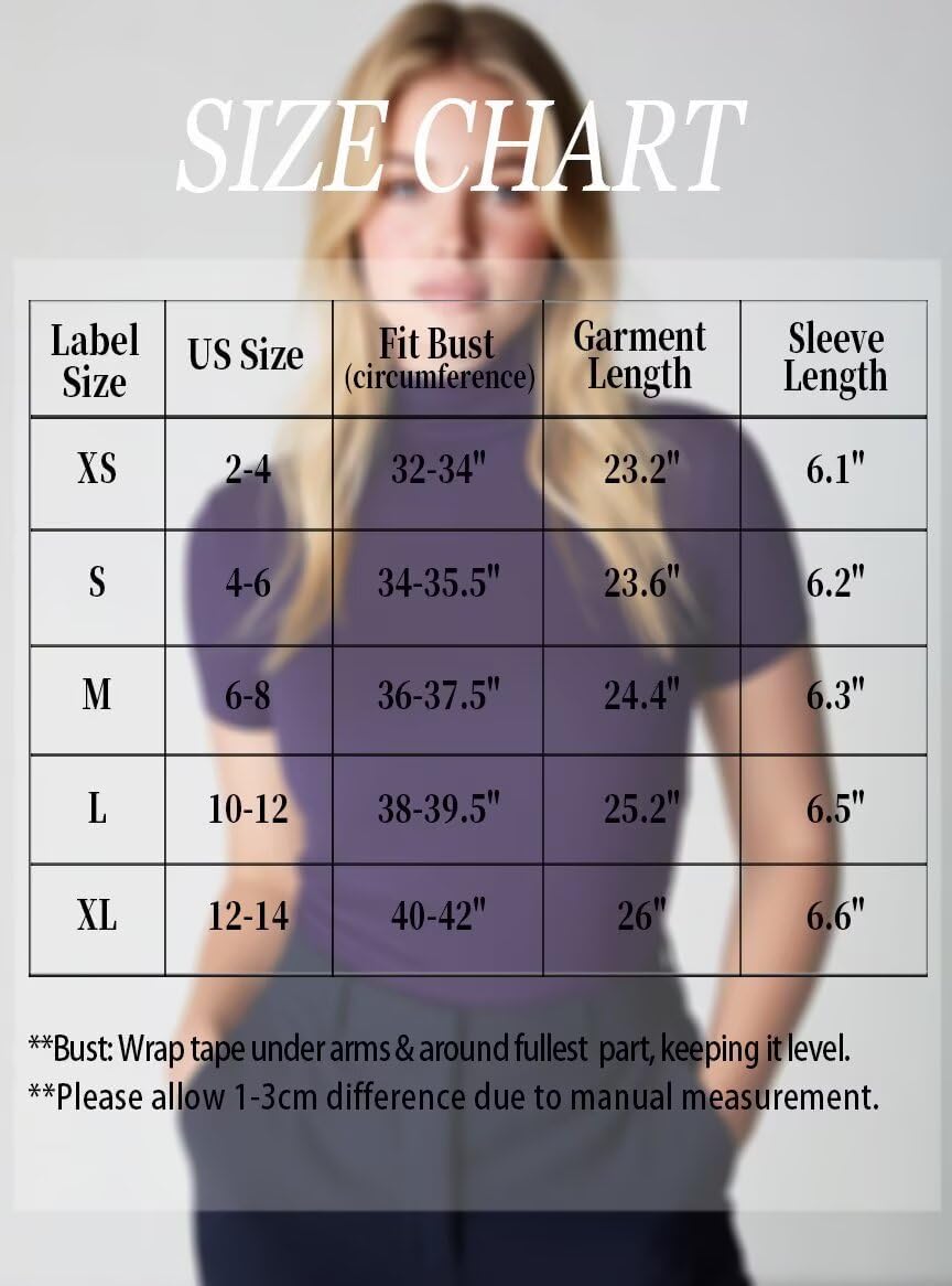 Size M ... Long Sleeve Turtleneck Women Stretch/Short Sleeve Tops Fitted Tee Shirt