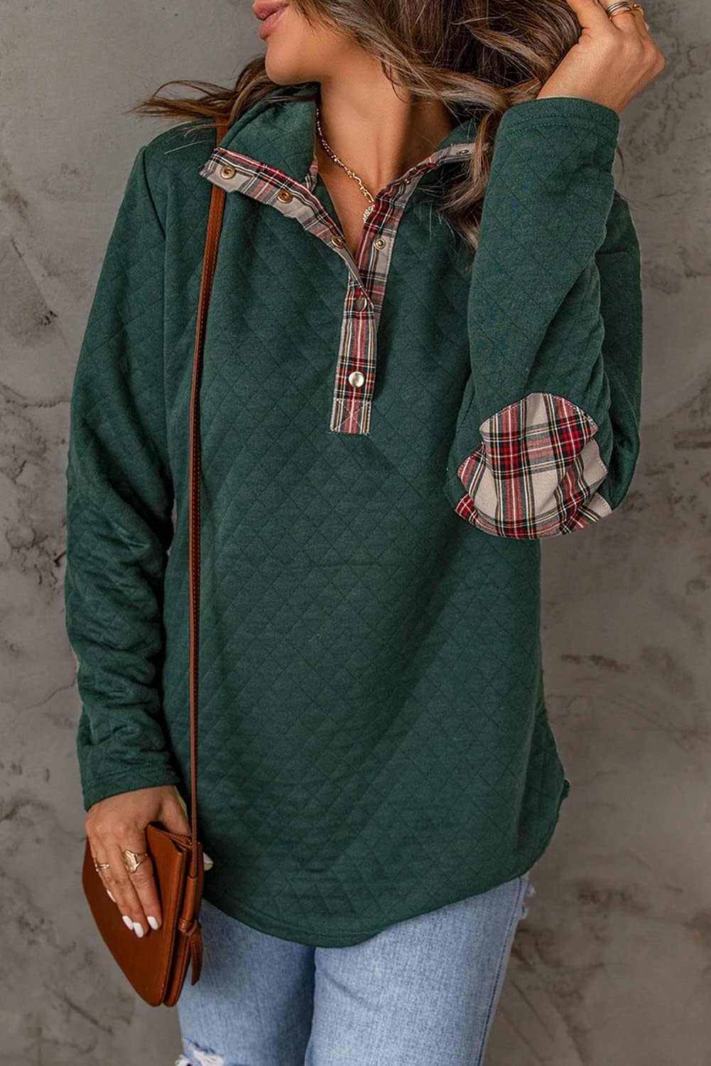 Size M ...Women's Green Geometric Texture Plaid Trim Sweatshirt Trendy Outfits 2024 Fall Clothes