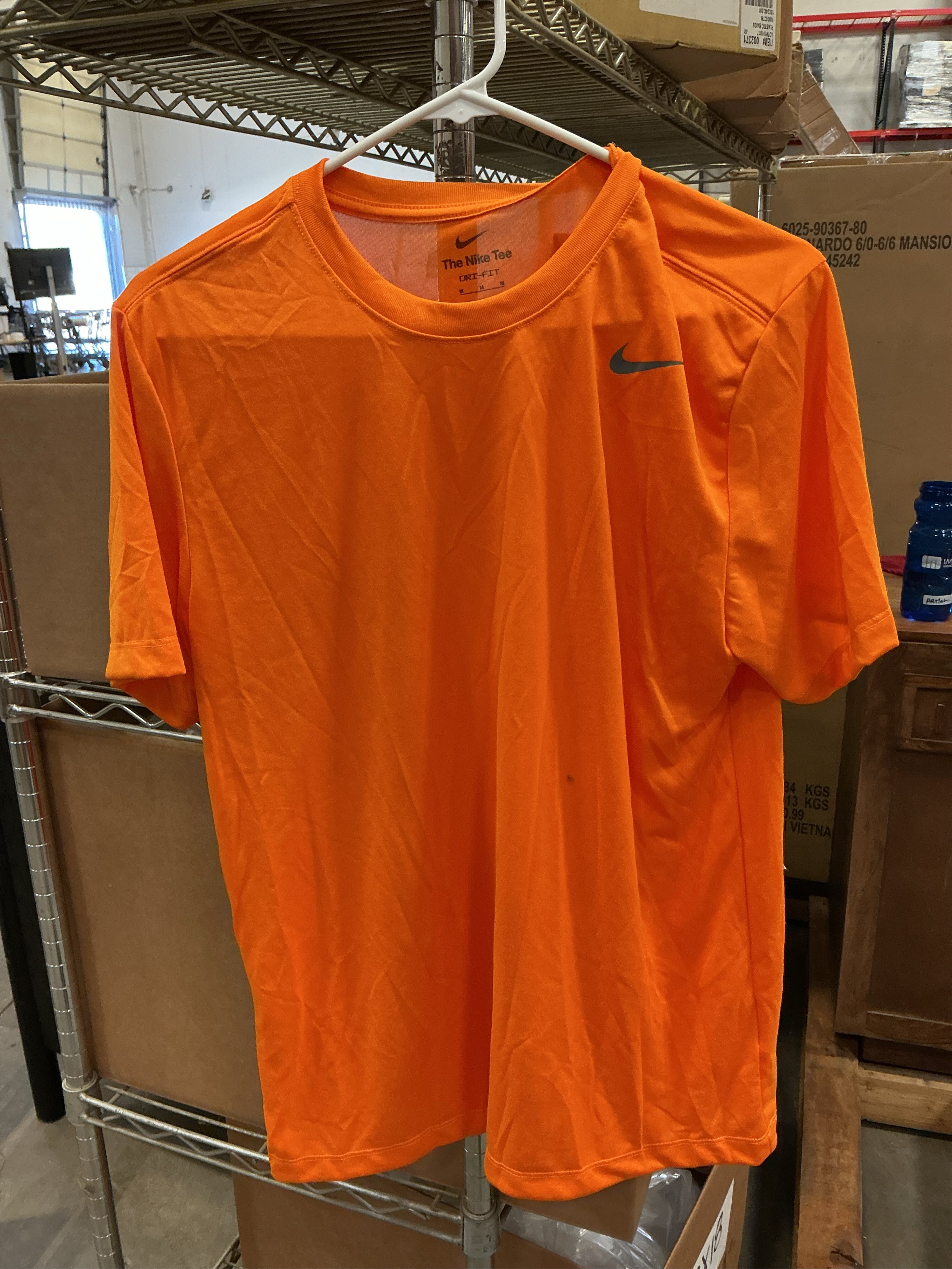 size med. Nike Legend Poly T-Shirt. Train with the Swoosh and feel the difference. Dri-FIT training top looks like a tee but performs like a training jersey. Lightweight, moisture wicking training top with screened Nike logo. 100% polyester.