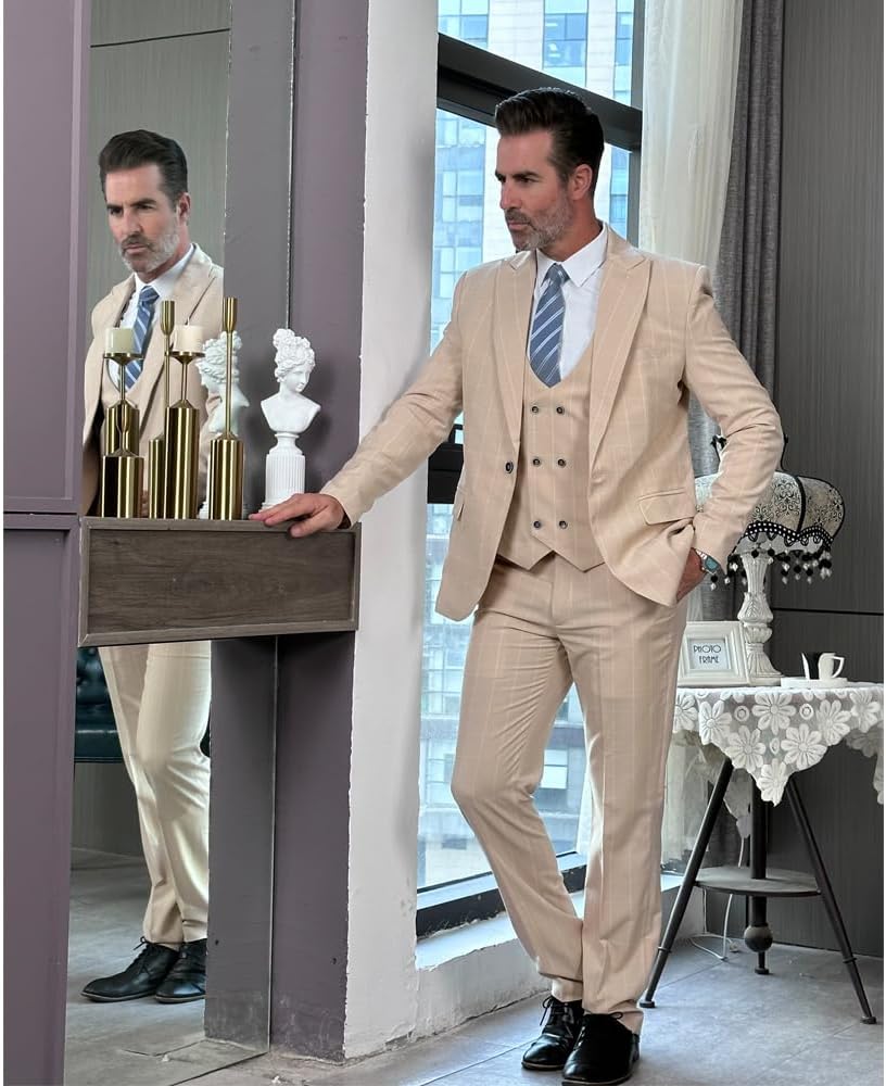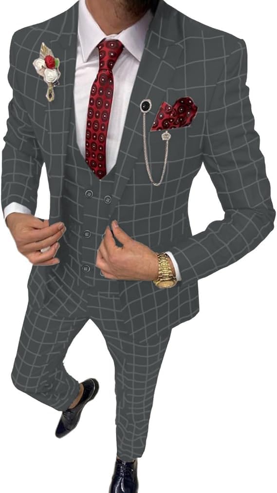 Size medium Mens Suit Plaid Tuxedos Business Suits Slim Fit Double Breasted