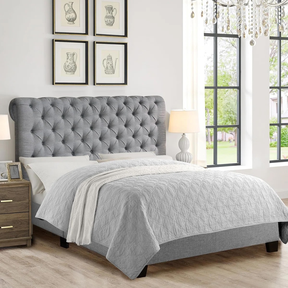 Size Queen Color Grey Upholstered Platform Bed with Tufted Wingback Headboard