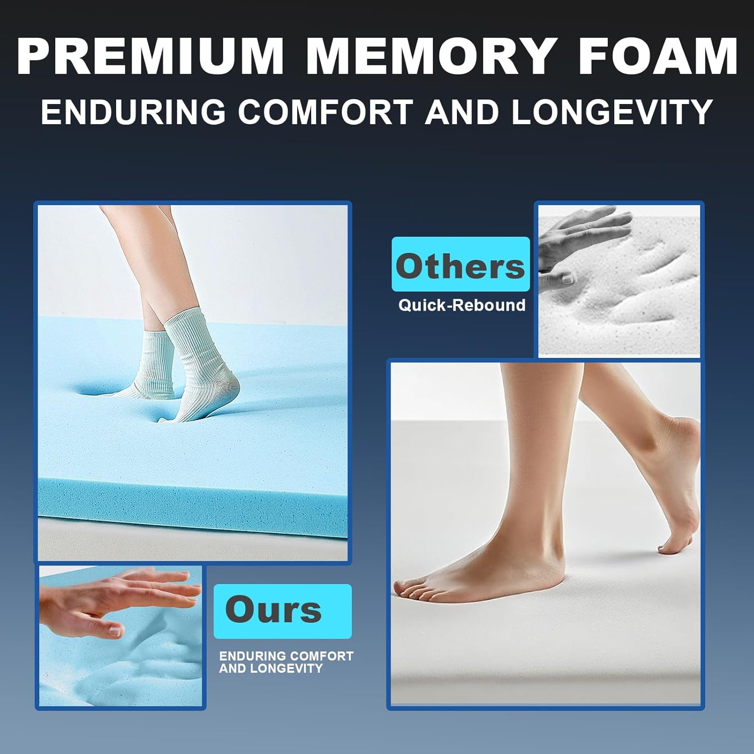 Size Queen Luxury Extra Thick Dual Layer Comfortable: Our 4 Inch Memory Foam Mattress Topper features a unique combination of 2 Inch Gel Memory Foam and 2 Inch Down Alternative Pillow Top, providing optimal comfort and support for a restful night's sleep.