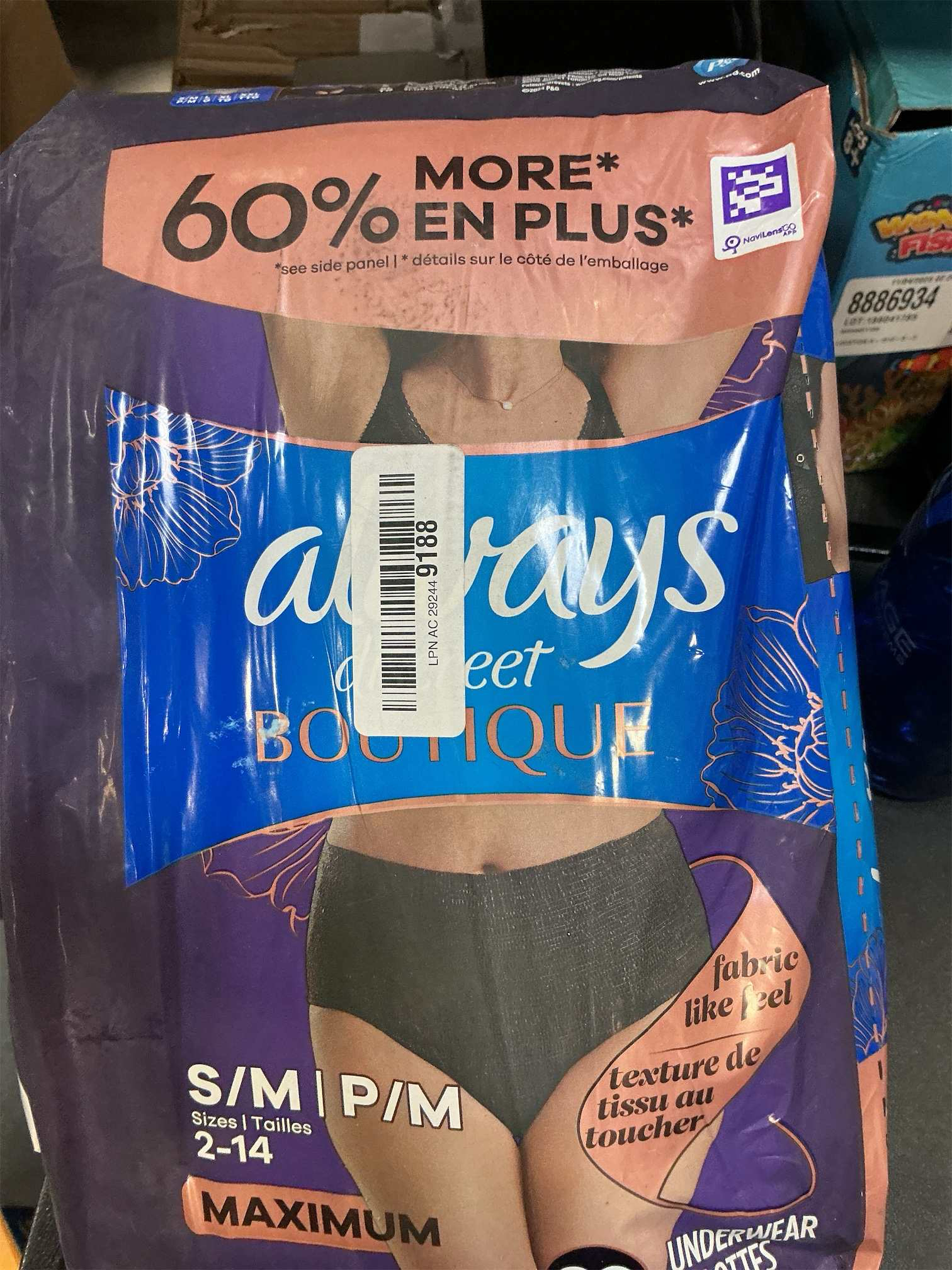 size S/M Always Discreet Boutique Incontinence and Postpartum Underwear for Women, Maximum Protection, Large, Black, 18 Count