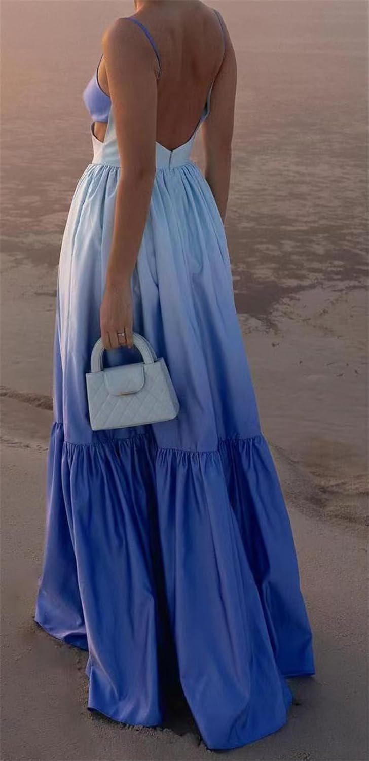 Size S/M ...Womens Sexy Spaghetti Straps V Neck Tie Dye Printed A-line Party Clubwear Maxi Dress