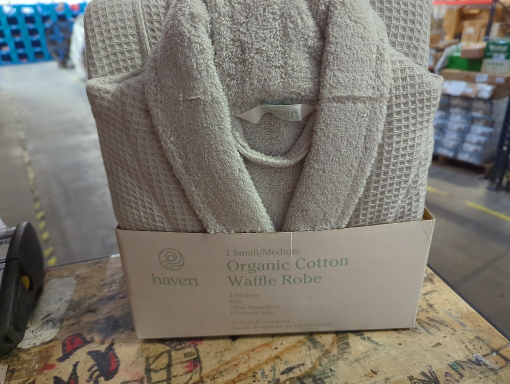 Size S/M..Haven ..Unisex Organic Waffle Robe, Long Bathrobe, Cotton, Alpine White,