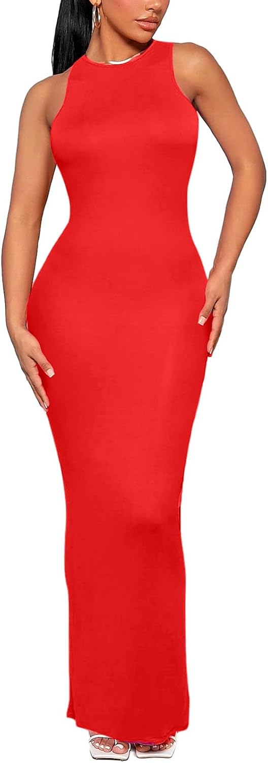 Design: Bodycon Tank Dress features crew neck, sleeveless, backless design with a circle cutout, racerback, bodycon fit and maxi length
