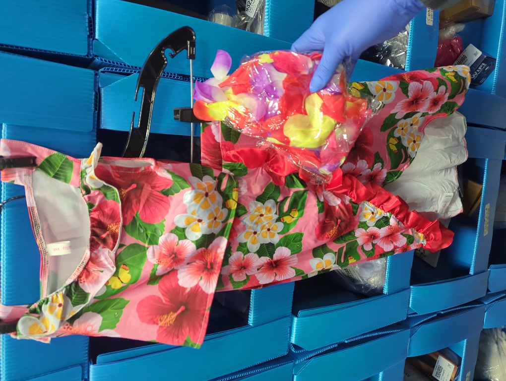 Size S....ReliBeauty Hawaiian Skirt Costume for Girls Red Flowers 6 Piece Kit