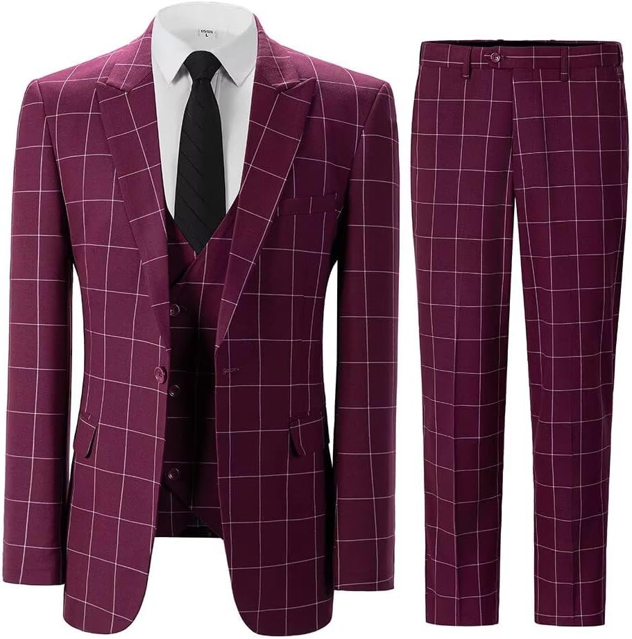 Size X/L ...Men's Plaid 3 Pieces Suits Slim Fit Tuxedo Sets for Men Business Formal Wedding Groomsmen Solid Blazer Jacket Vest Pants Sets