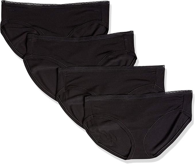Size XL Color Black Organic Cotton Underwear Womens 4 Pack. Black 4Pack, Multi Colors 4Pack, High Waist, High Cut bikini brief.