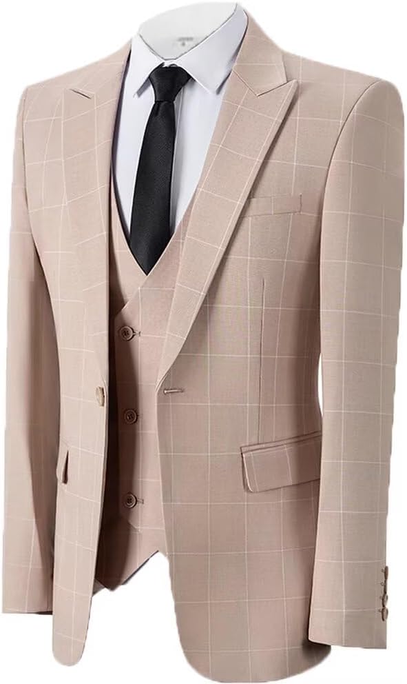 Size XL...Men's Plaid 3 Pieces Suits Slim Fit Tuxedo Sets for Men Business Formal Wedding Groomsmen Solid Blazer Jacket Vest Pants Sets