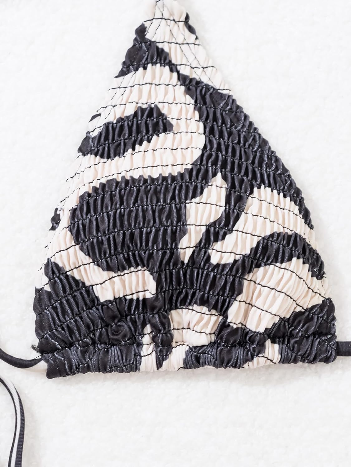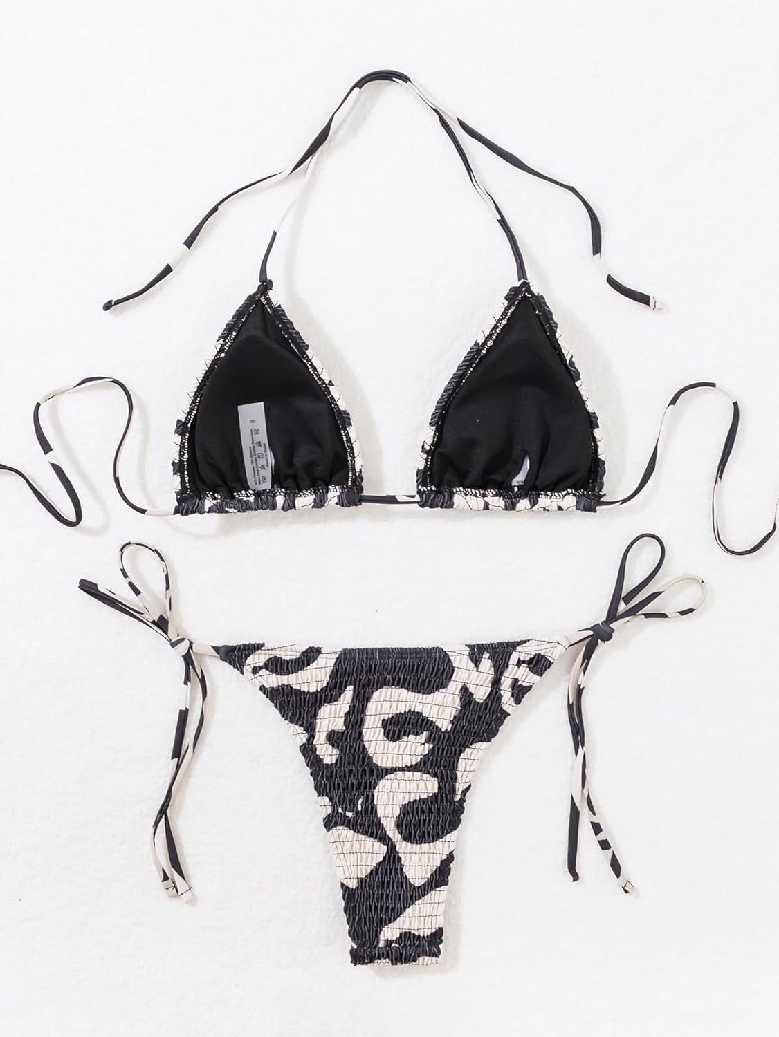 size XS SHENHE Women's 2 Piece Smocked Triangle Bikini Sets Halter Drawstring Side Cute Swimsuits