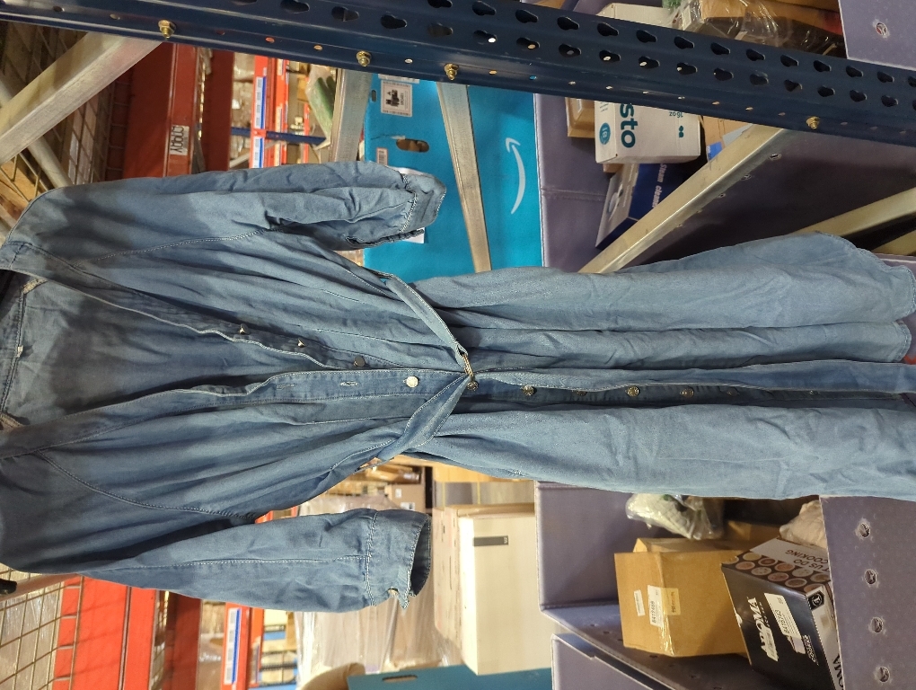 Size XS Vogrtcc Women’S Belted Blouse Denim Dress Pullover Turn-Down Collar Ankle-Length Long Sleeve A-Line Dresses