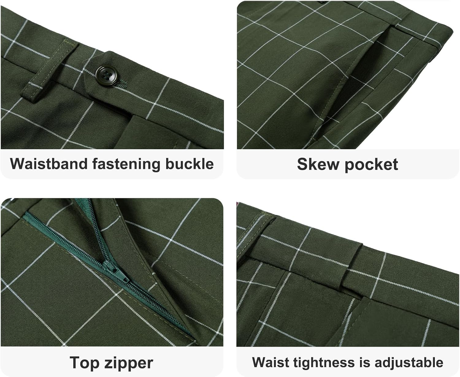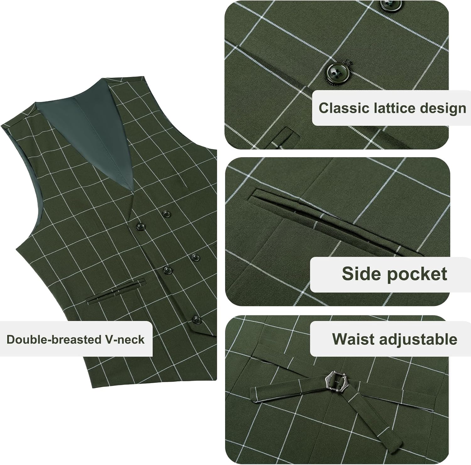 Size XXL color green Men's Slim Fit 3 Piece Plaid Suit Set,Business Formal Attire Solid Blazer Jacket Vest Pants