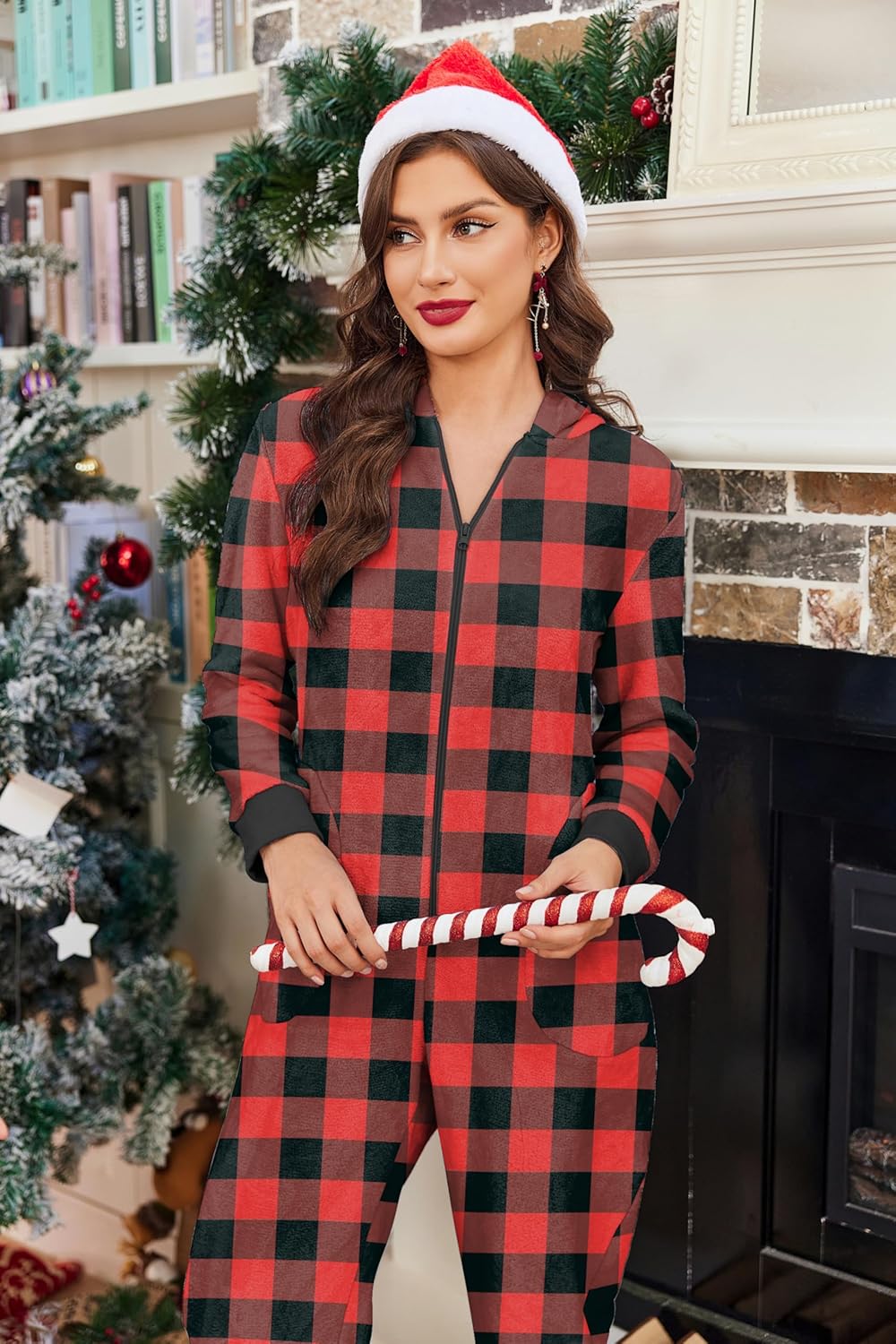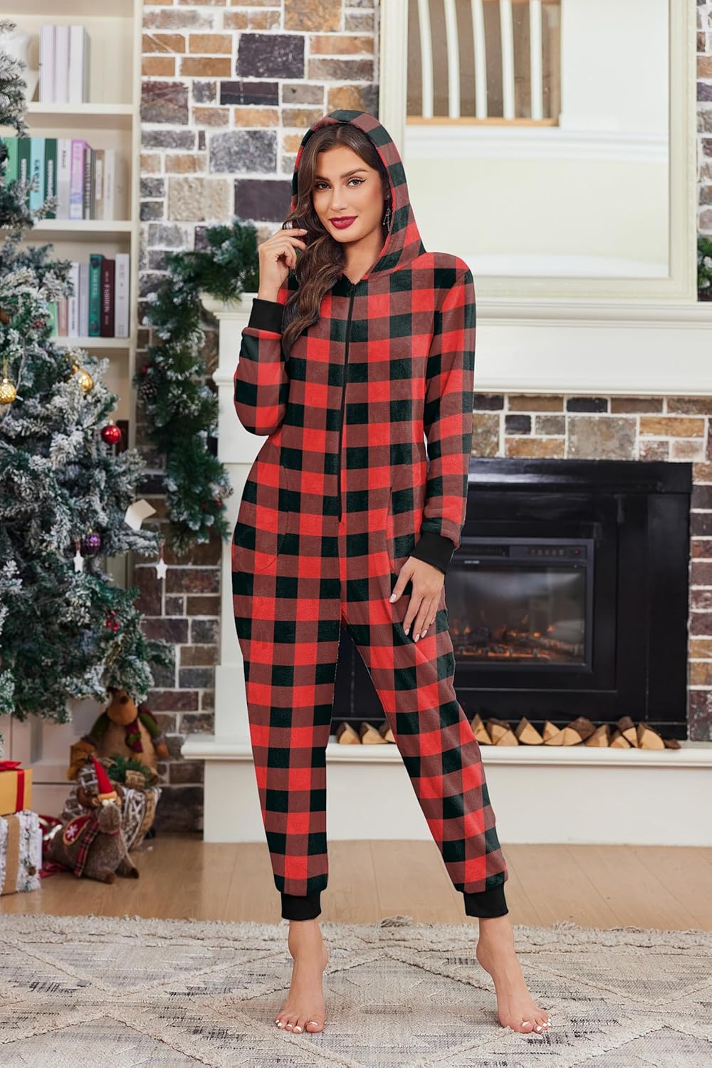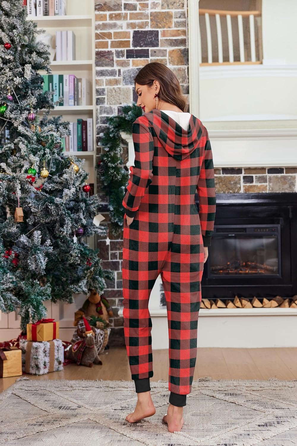 Size XXL Ekouaer Christmas Onesie Fleece Long Sleeve Hooded One Piece Pajamas for Women Zipper Pjs with Pocket