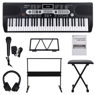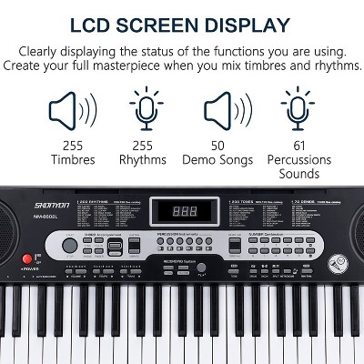 SKONYON 61-Key Beginners Electronic Keyboard Piano Set with LCD Screen, Lighted Keys, 3-Teaching Modes
