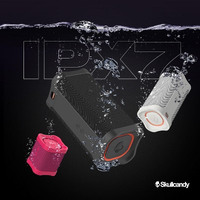 Portable & Durable - Skullcandy's wireless Bluetooth speaker comes with a nylon wrist wrap for easy carrying. The waterproof woven fabric mesh is engineered to allow maximum range of audio waves to pass through.