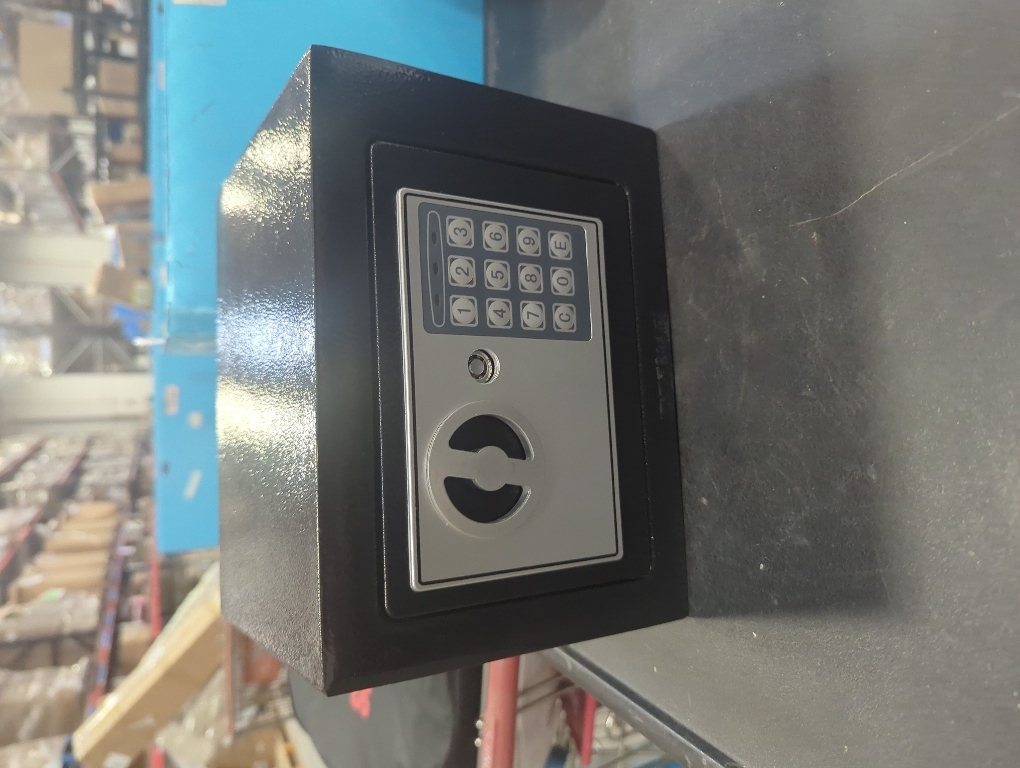 About Size: This Safe Box Exterior measures 9.05 x 6.7 x 6.7 inches (WxLxH) 0.24-cubic-feet security safe with electronic lock and 3 operation indicator lights; powered by (4) AA batteries (not included).