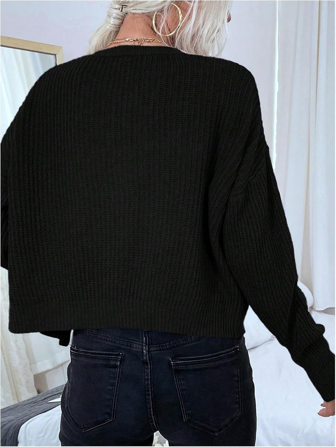 Features: Cropped cardigan, open front design, long sleeves, lightweight knit, versatile layering piece