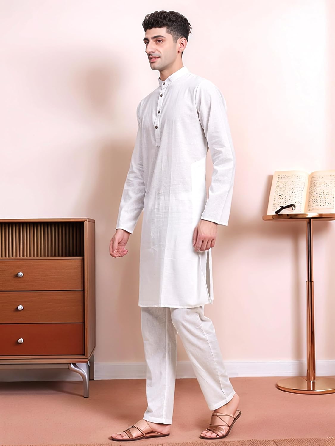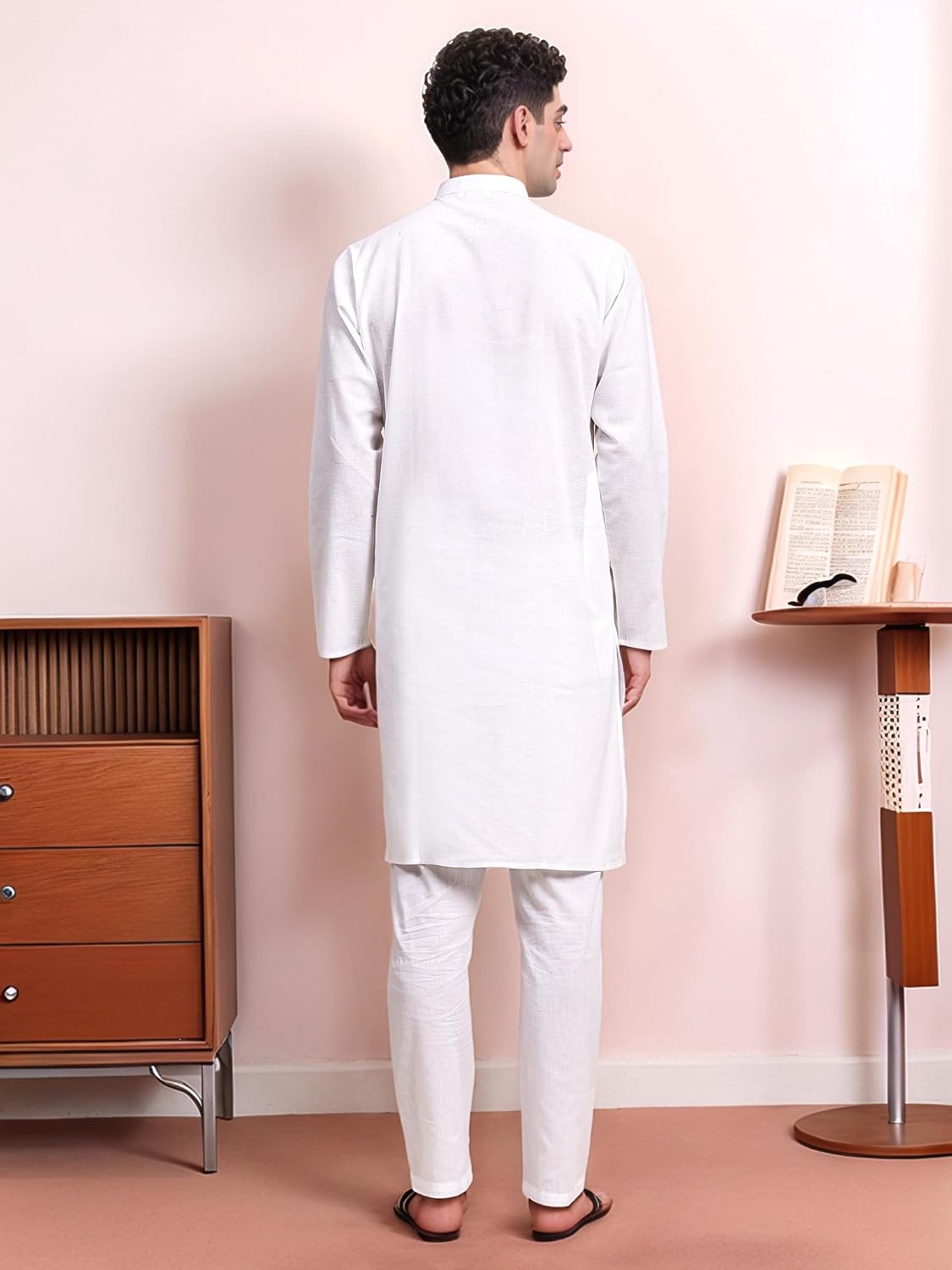 Sojanya since 1958 Men's Cotton Linen Solid Kurta Pajama Mandarin Collar Casual Party Dress