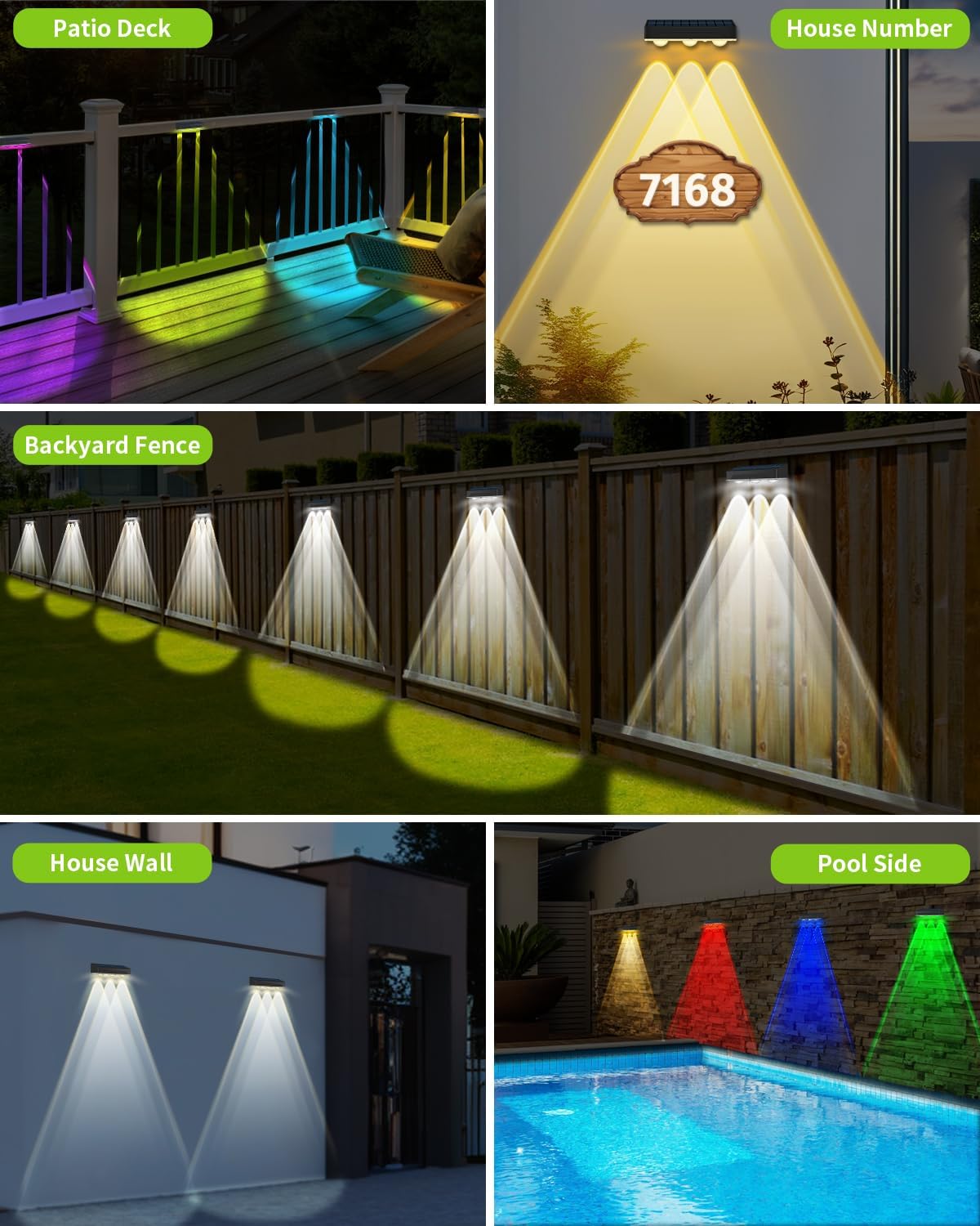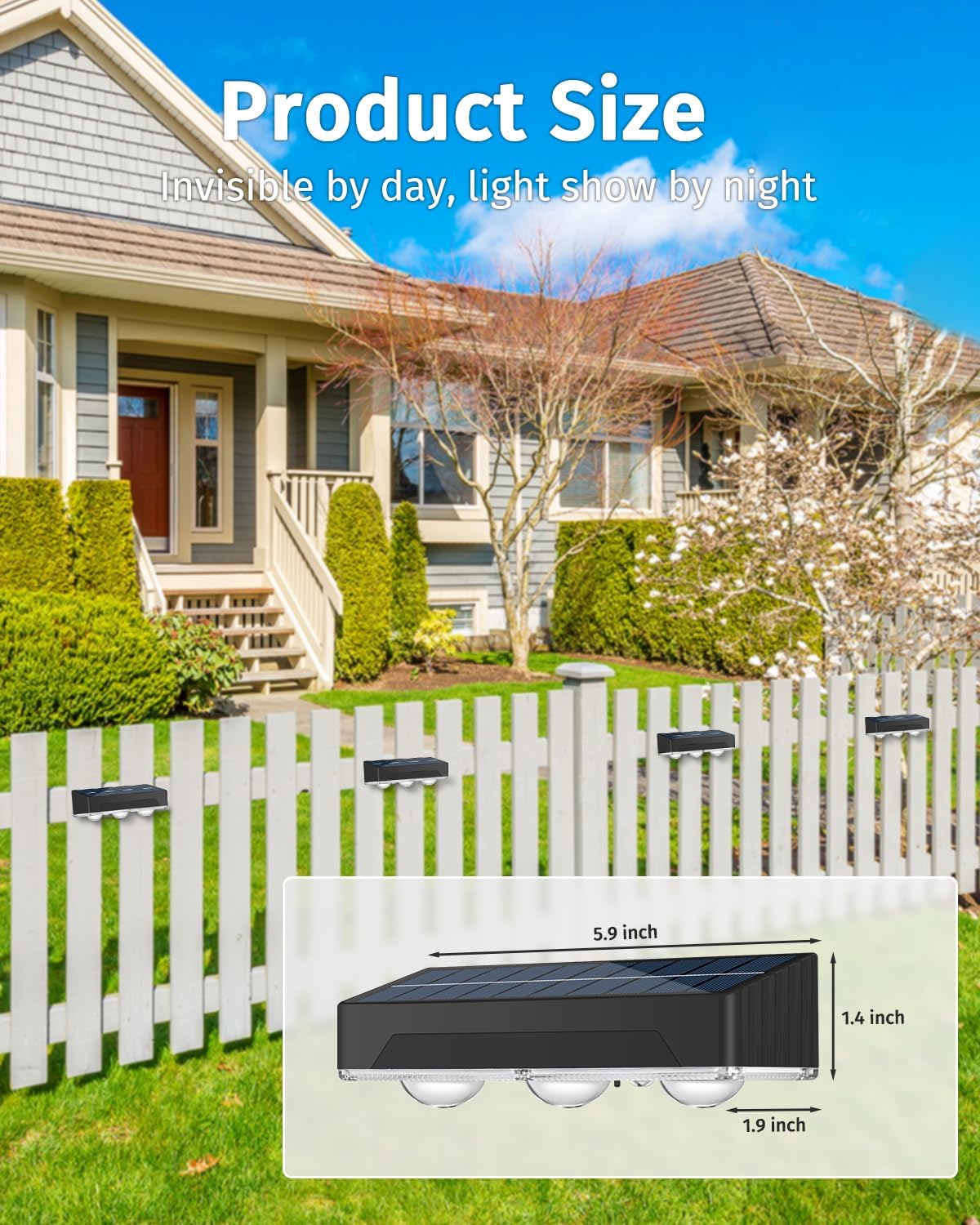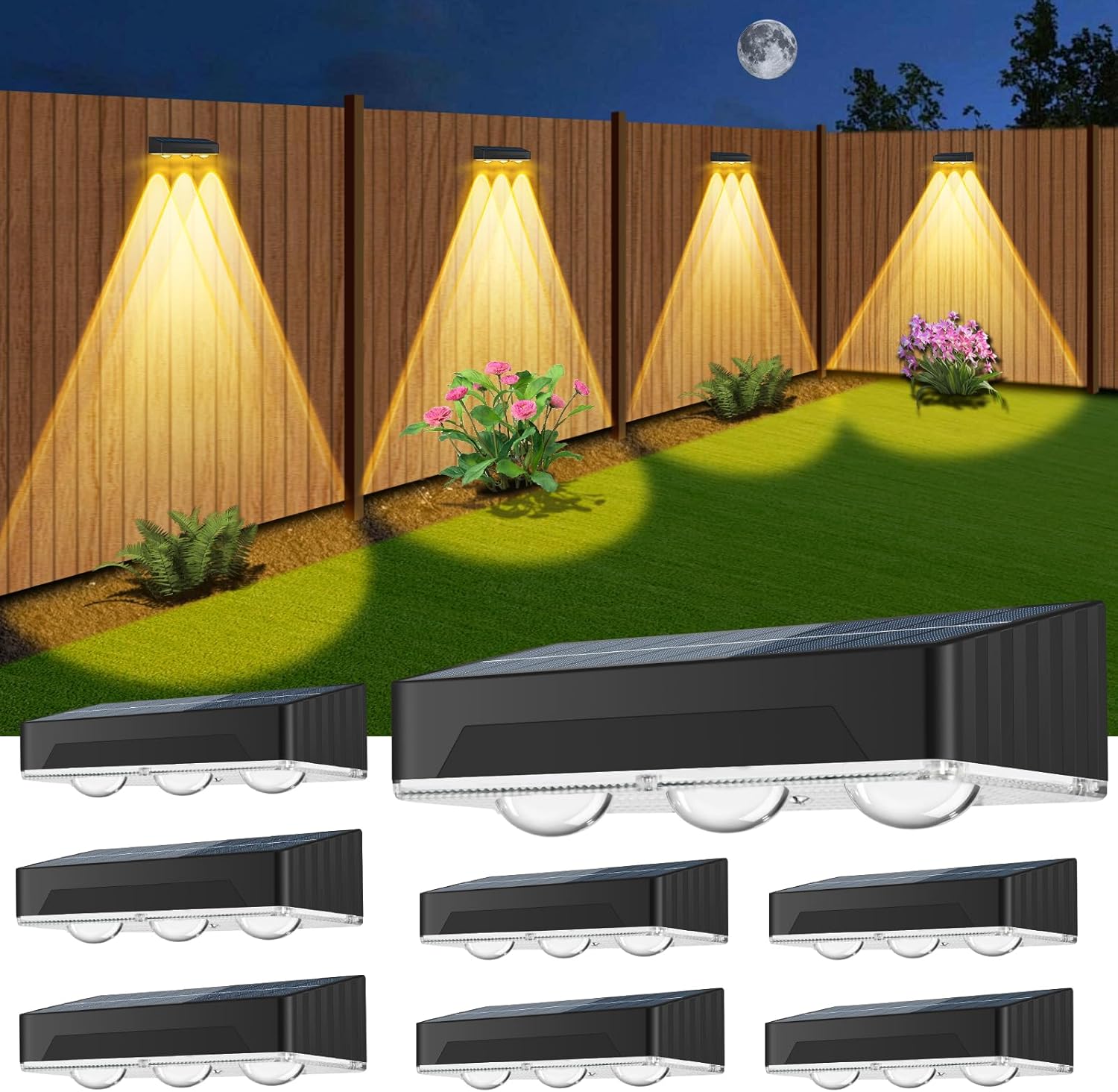 Solar Fence Lights Outdoor 8 Pack Waterproof High Brightness Upgraded 3 LED Lens Solor Deck Lights Warm & Cool White RGB 10 Colors Outside Solar Powered Wall Light for Backyard Patio Step Railing