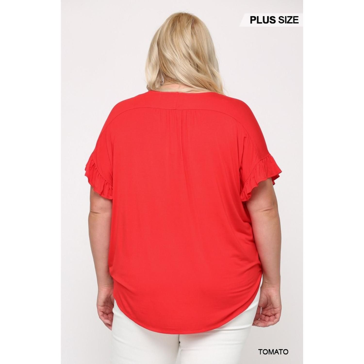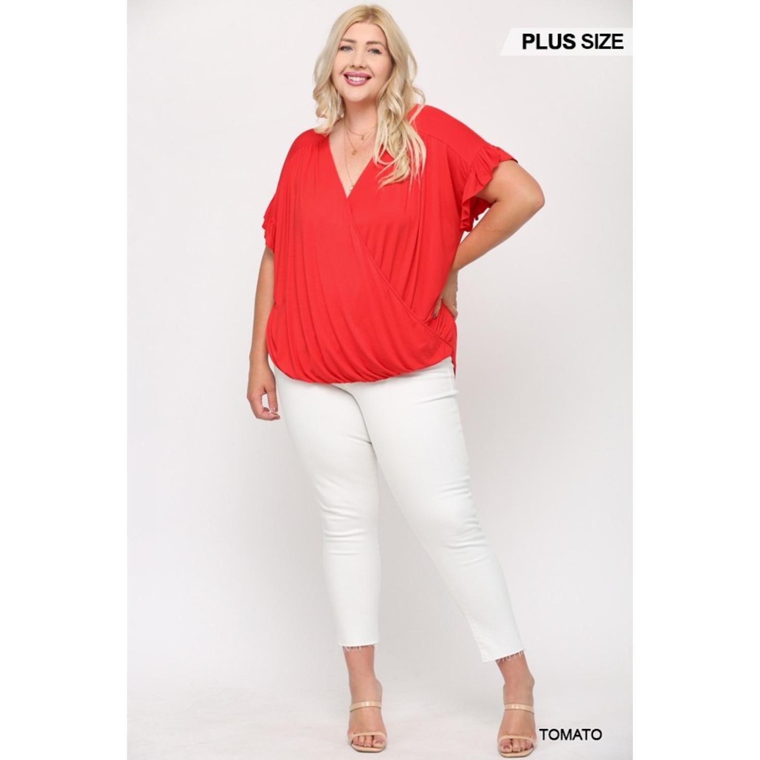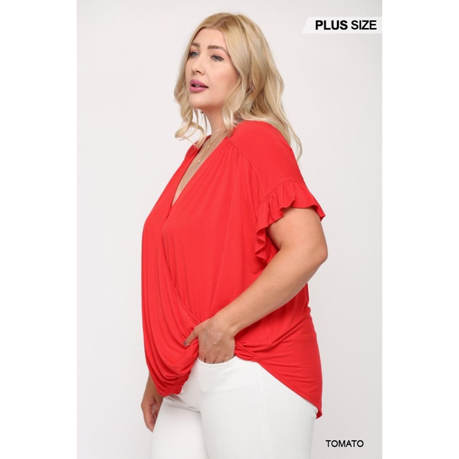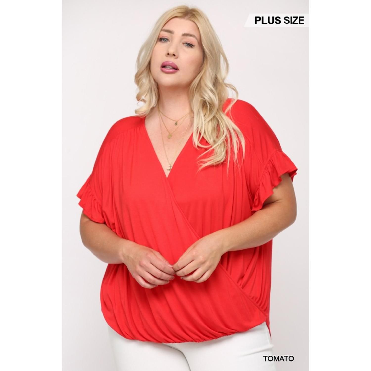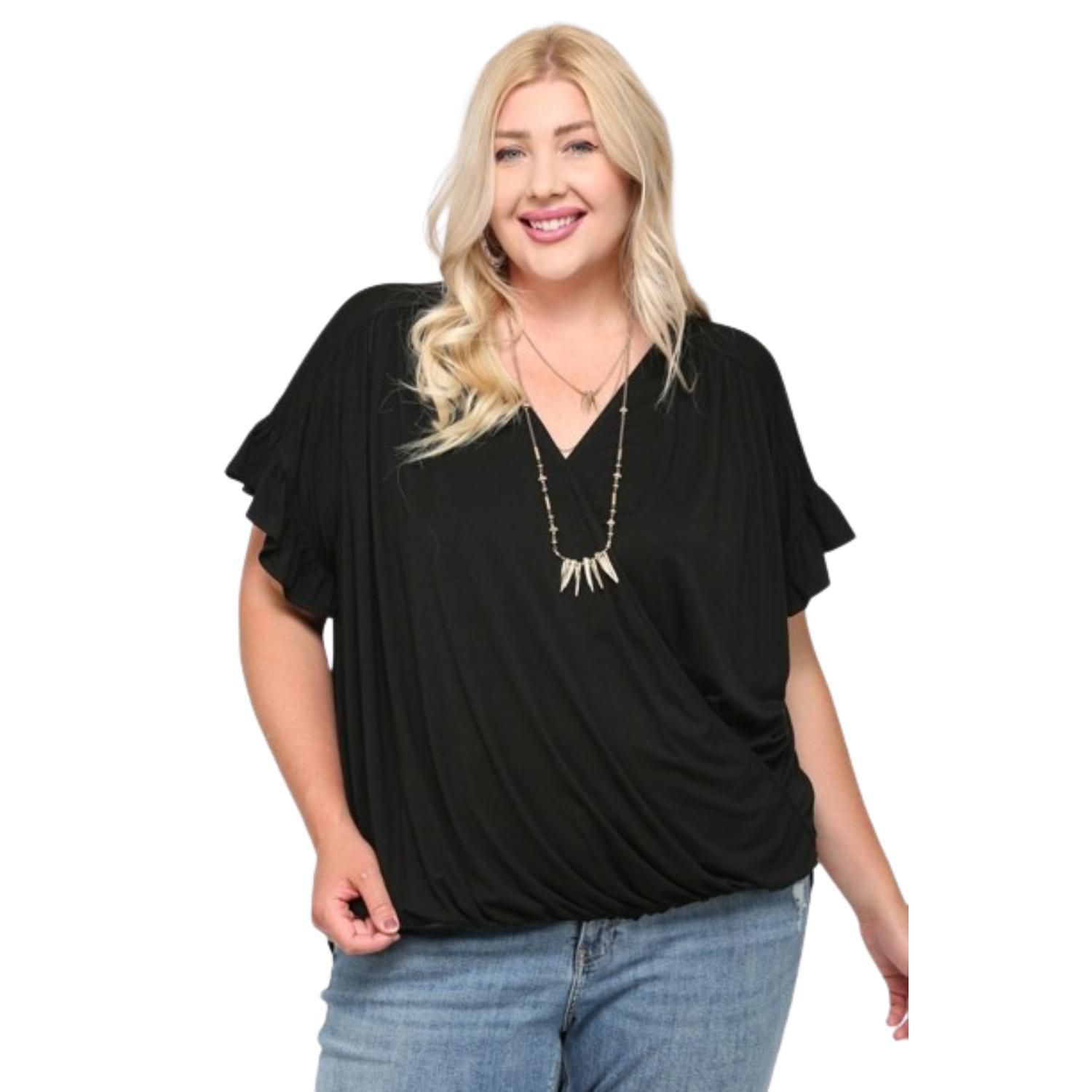 Solid Viscose Knit Surplice Top With Ruffle Sleeve blue